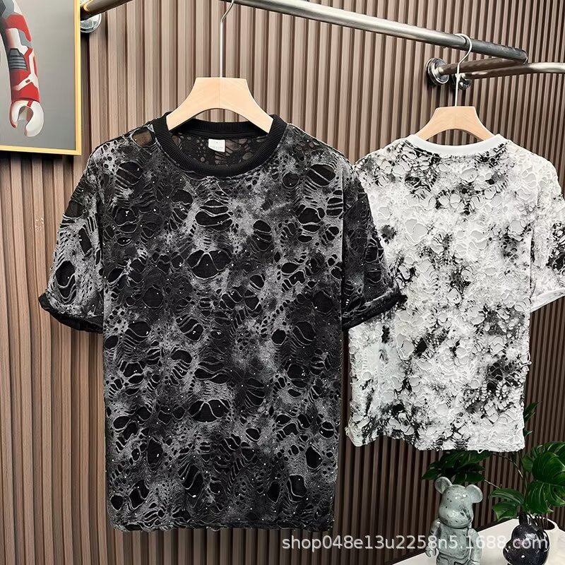 2025 夏の新インターネットセレブ tシャツメンズ半袖ファッショントレンディな個性刺繍スリムカジュアルトップス t