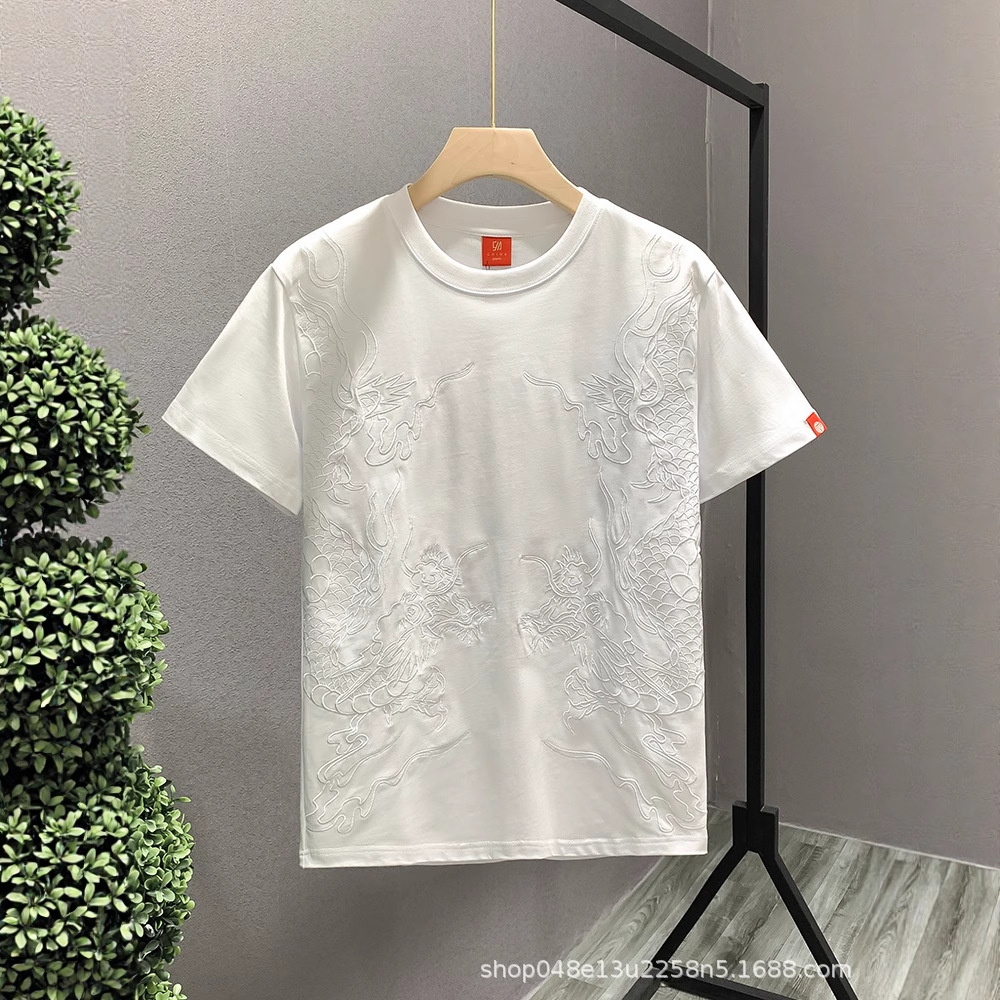 ヨーロッパのファッショントレンドブランド、国民的トレンドの重工業刺繍デザイン、ニッチな軽い高級Tシャツ、メンズ半袖カジュアルルーズTシャツ