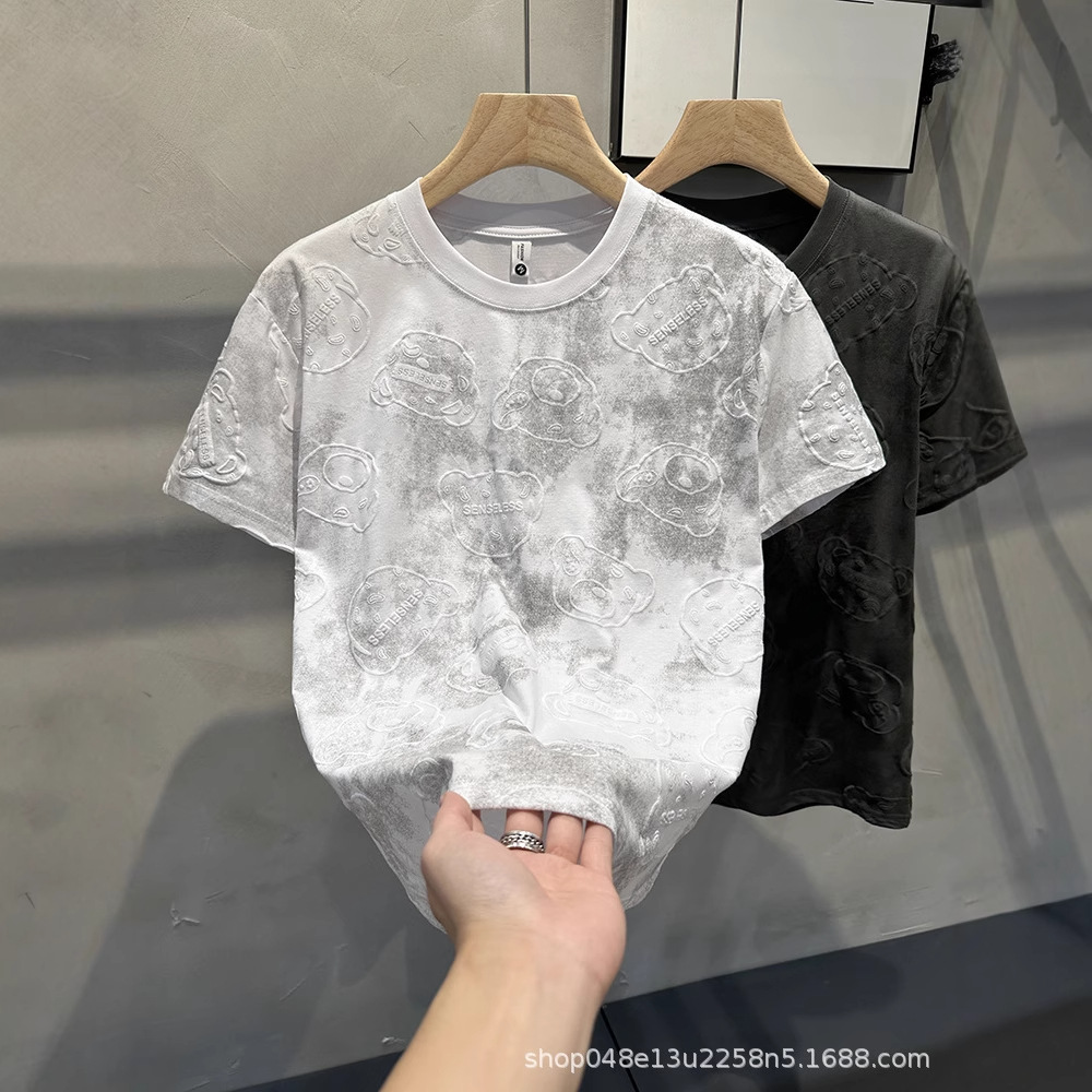 半袖Tシャツメンズ新作楽しいクマプリント若者トレンドカップル着用メンズタイダイゆったり人気半袖T