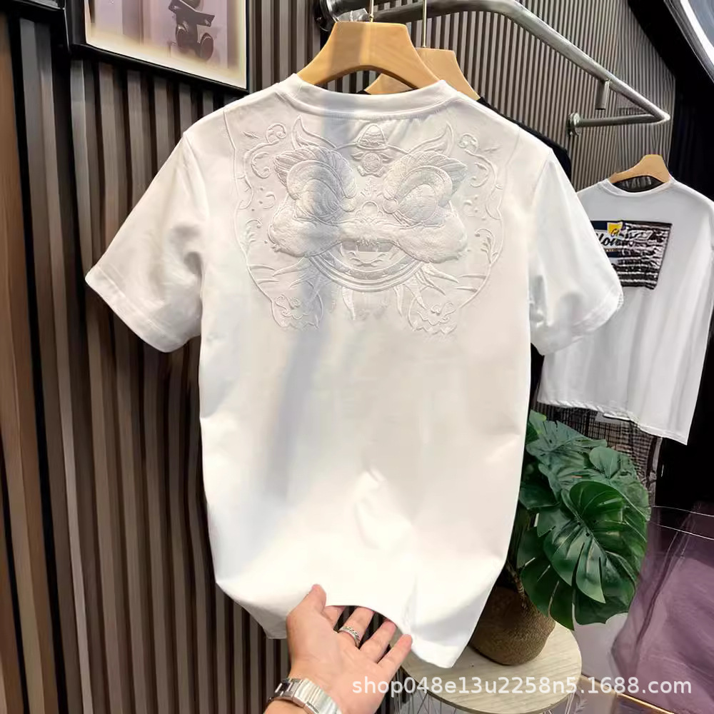2025 中国風ライオン覚醒半袖 tシャツメンズ 2025 夏の新カジュアル半袖 tシャツ若者底シャツ