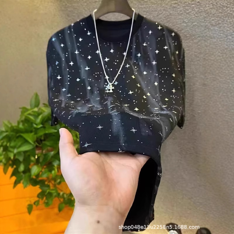 2025 新しい半袖メンズトレンディなライト高級ベビーブレスラウンドネック Tシャツルーズで多用途なトップメンズ半袖 Tシャツ