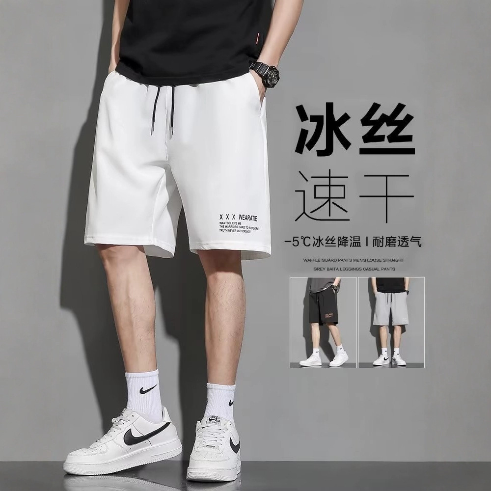 メンズカジュアルパンツ、ゆったり速乾アイスシルクスポーツパンツ、5点パンツ、夏用軽量ランニングショーツ、トレンディで多用途