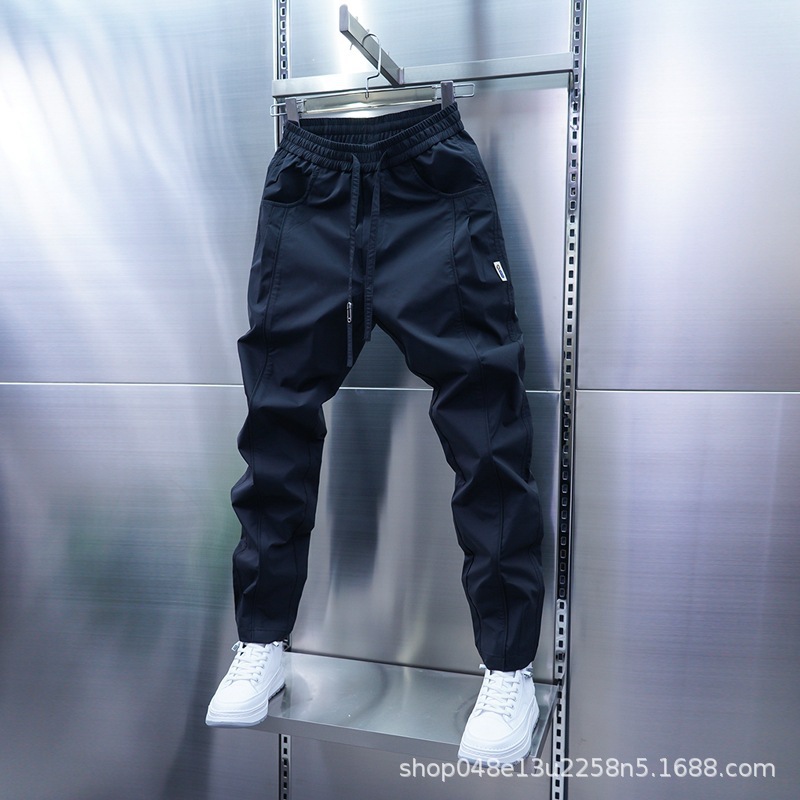 夏用薄手メンズパンツ、メンズトレンドブランドイン超薄型速乾カジュアル万能トレンドルーズレギンスアイスシルクパンツ男性用