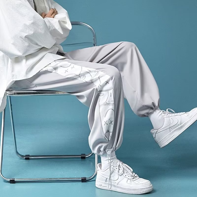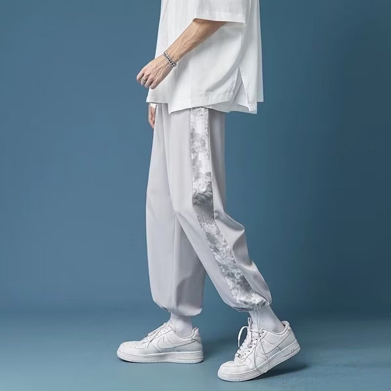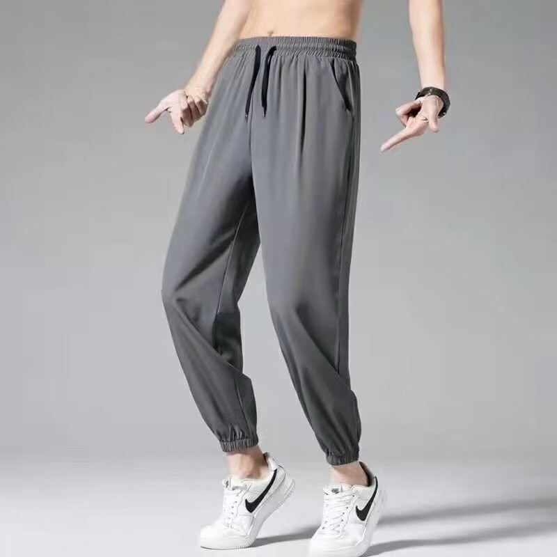 夏用アイスシルクワークパンツ、メンズルーズレギンス、速乾9点スポーツパンツ、メンズ大きいサイズカジュアルパンツ、トレンド