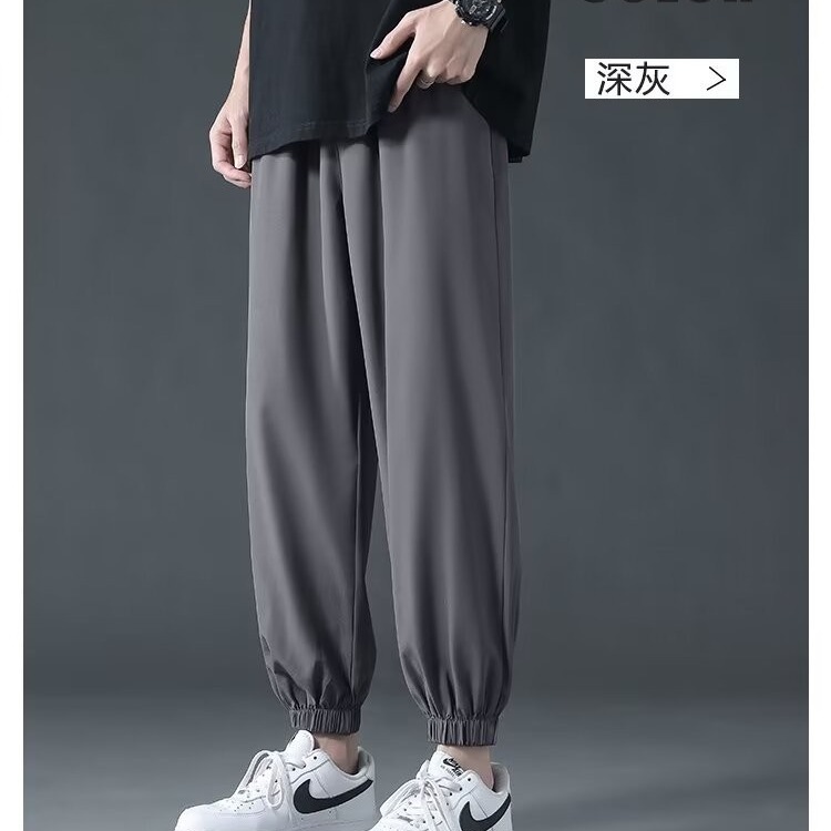 夏のアイスシルクカジュアルパンツメンズ超薄型パンツメンズルーズで多用途なトレンディなスポーツパンツメンズ9点パンツレギンス