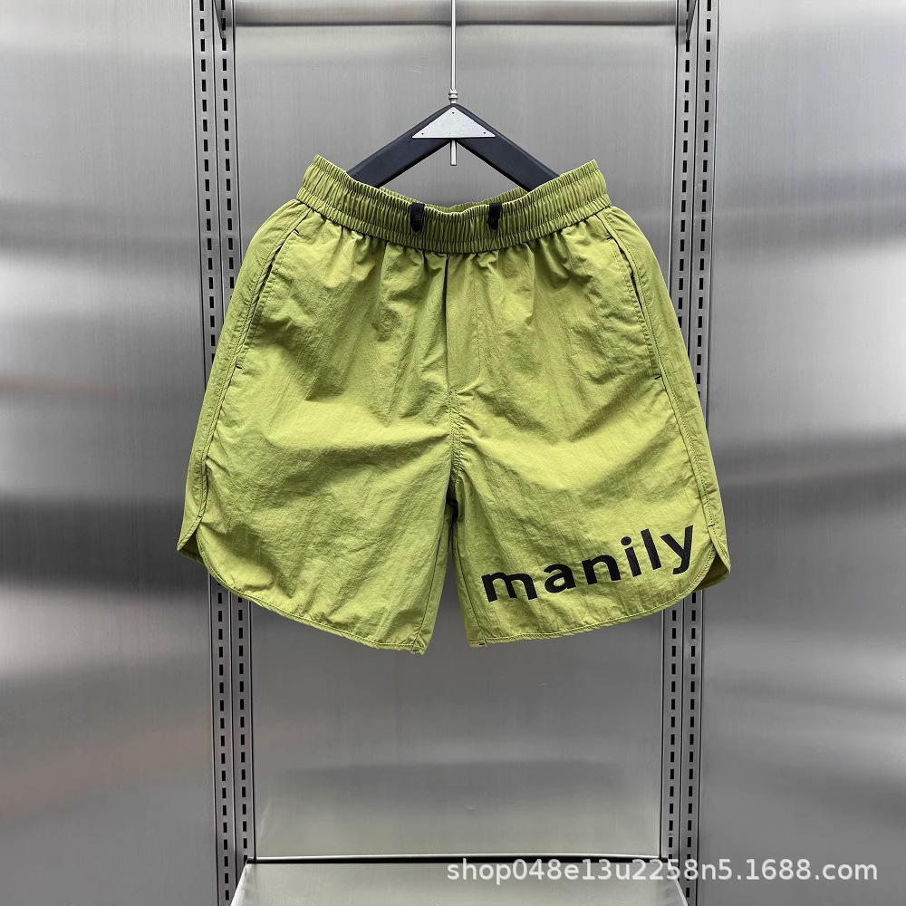 夏薄いメンズトレンディカジュアルショーツ通気性速乾ビーチパンツファッショナブルなレタープリントハンサム五分パンツ