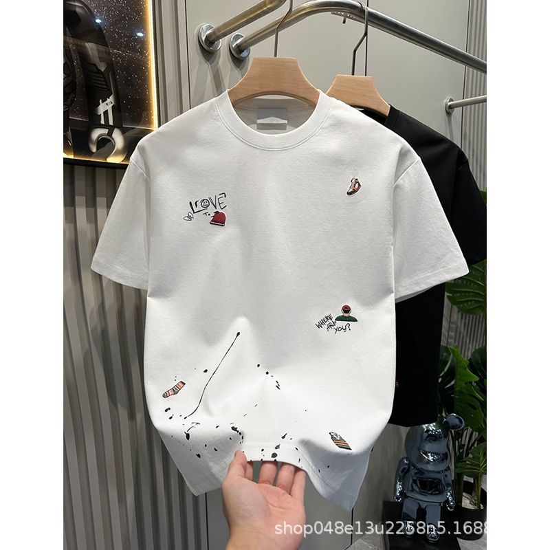 高級個性刺繍半袖tシャツメンズファッション服2025夏新作男性丸首半袖tシャツ