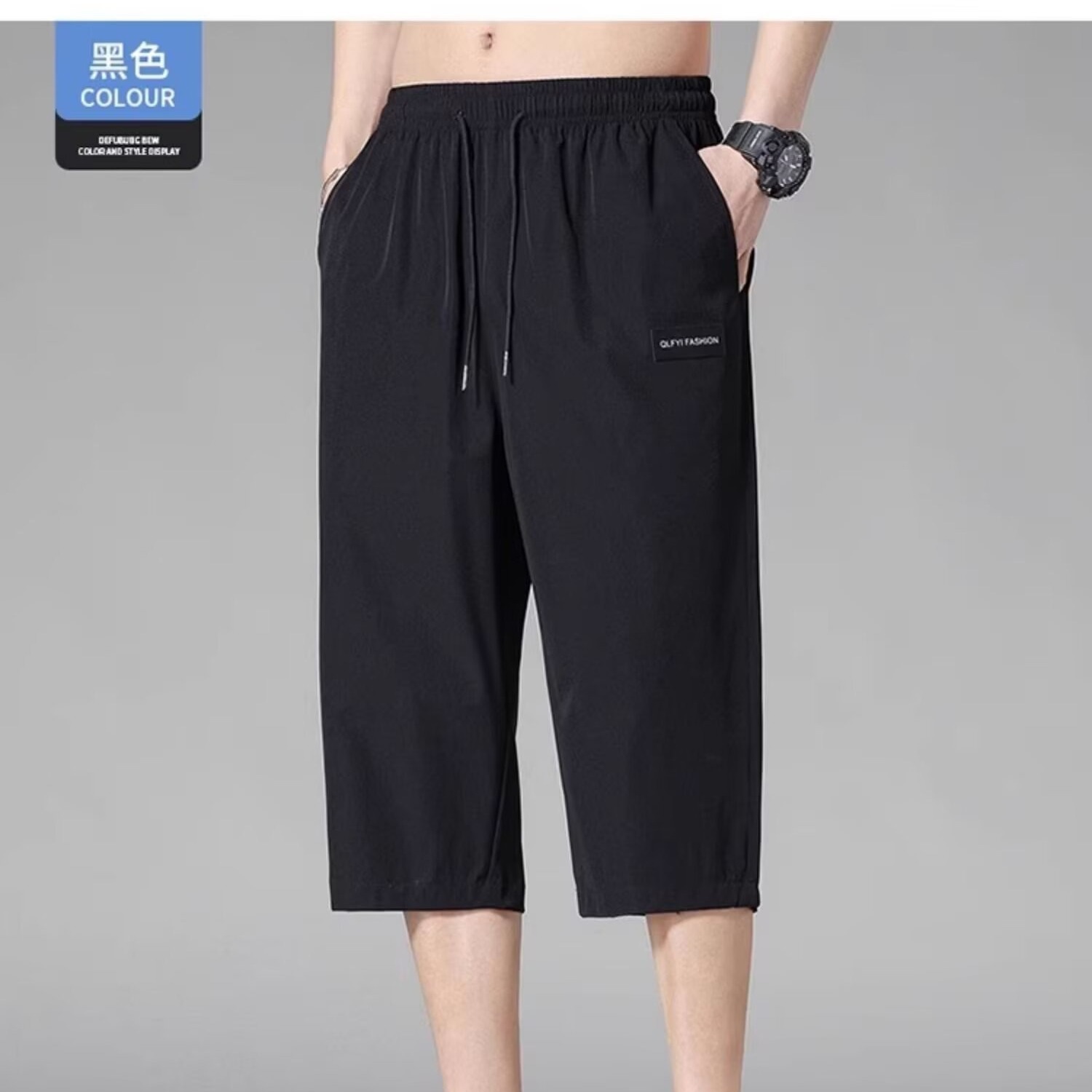 メンズ夏用七分パンツ、アイスシルク薄手トレンドブランド、ゆったり速乾ビーチパンツ、メンズスポーツカジュアル七分パンツ