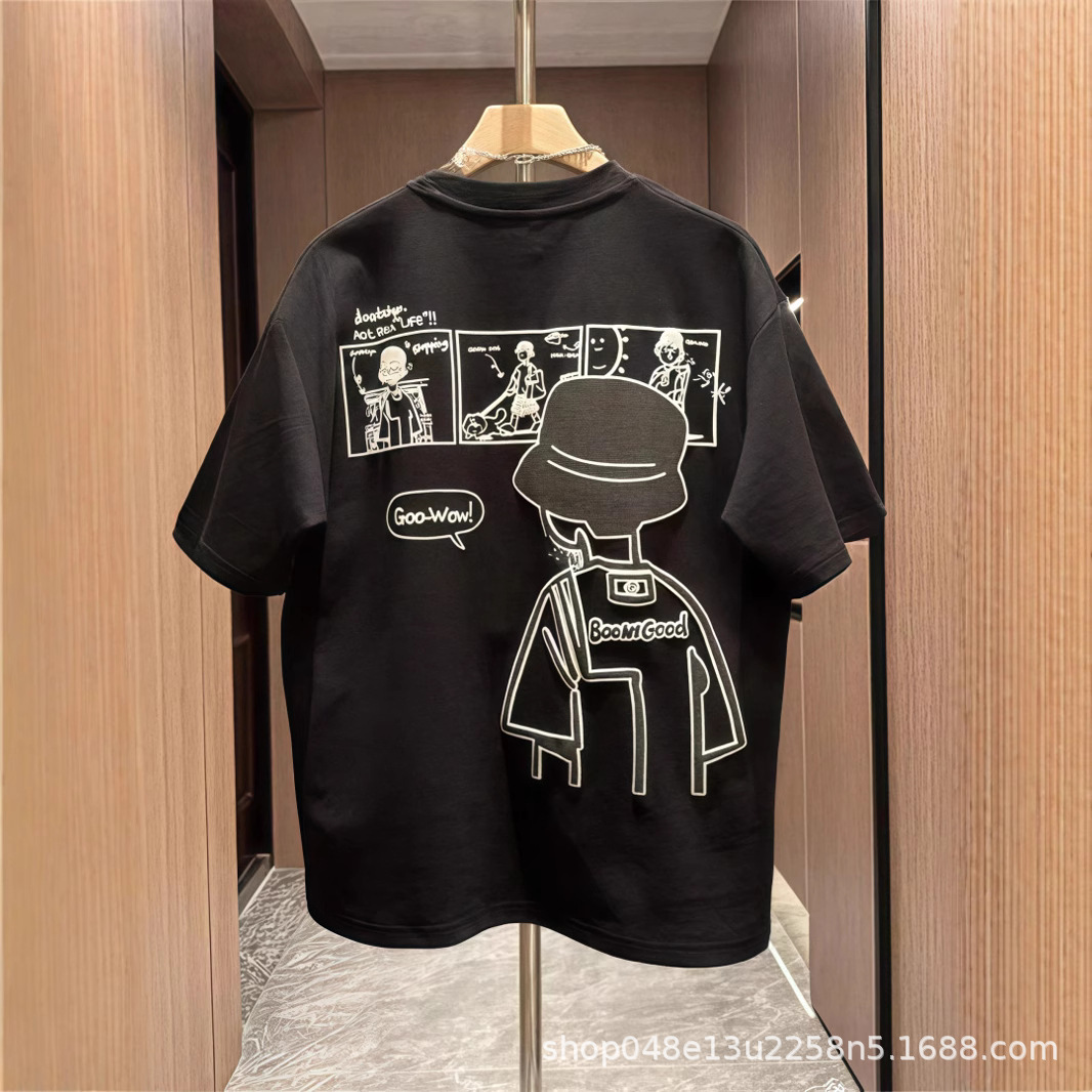 夏の新しいメンズ半袖カジュアル漫画プリントラウンドネックトップ多用途半袖トレンディなブランドファッションスリムTシャツ