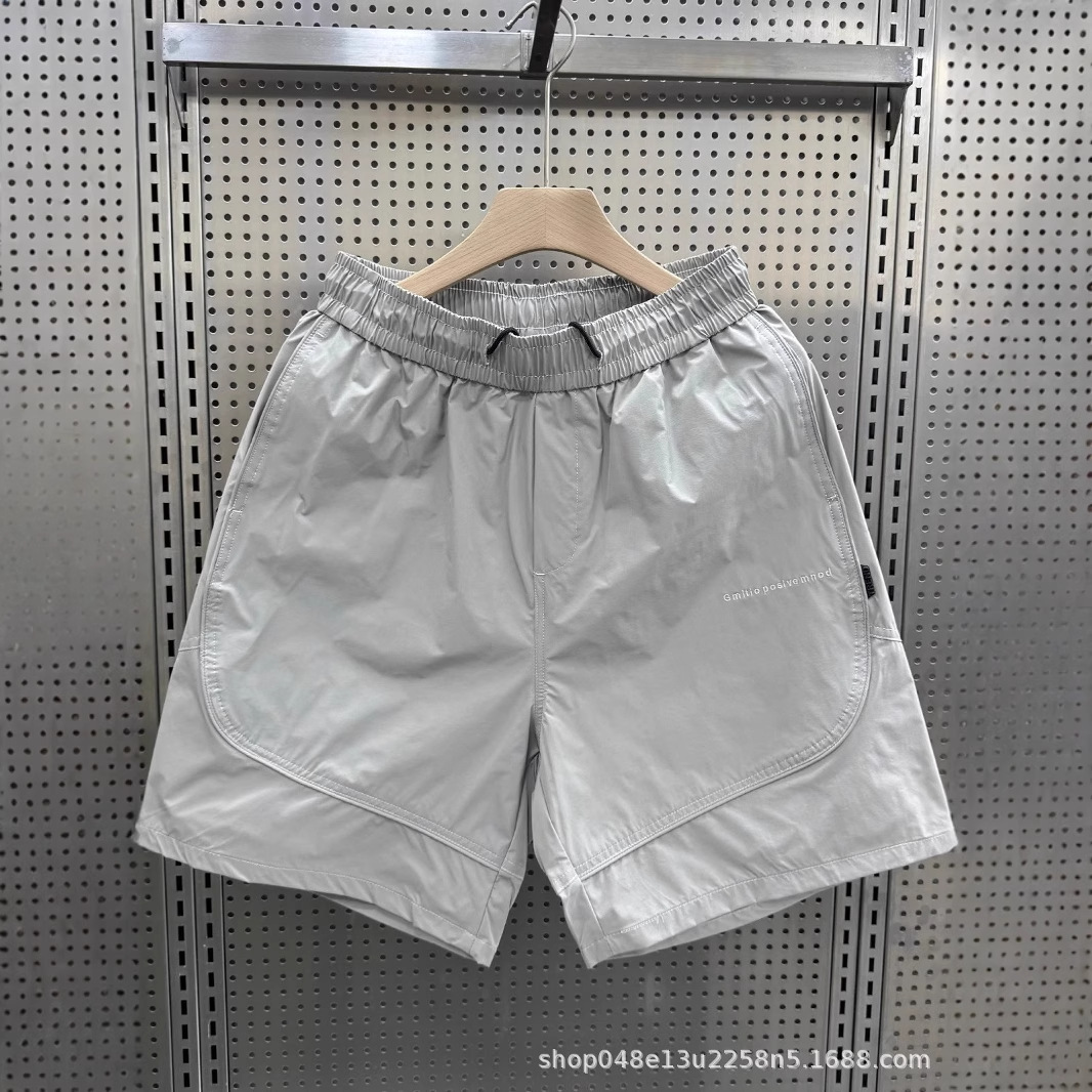 夏のウエストゴムシンプルな無地スプライシングカジュアルショーツメンズファッショナブルな薄い5点パンツ速乾性ビーチパンツ