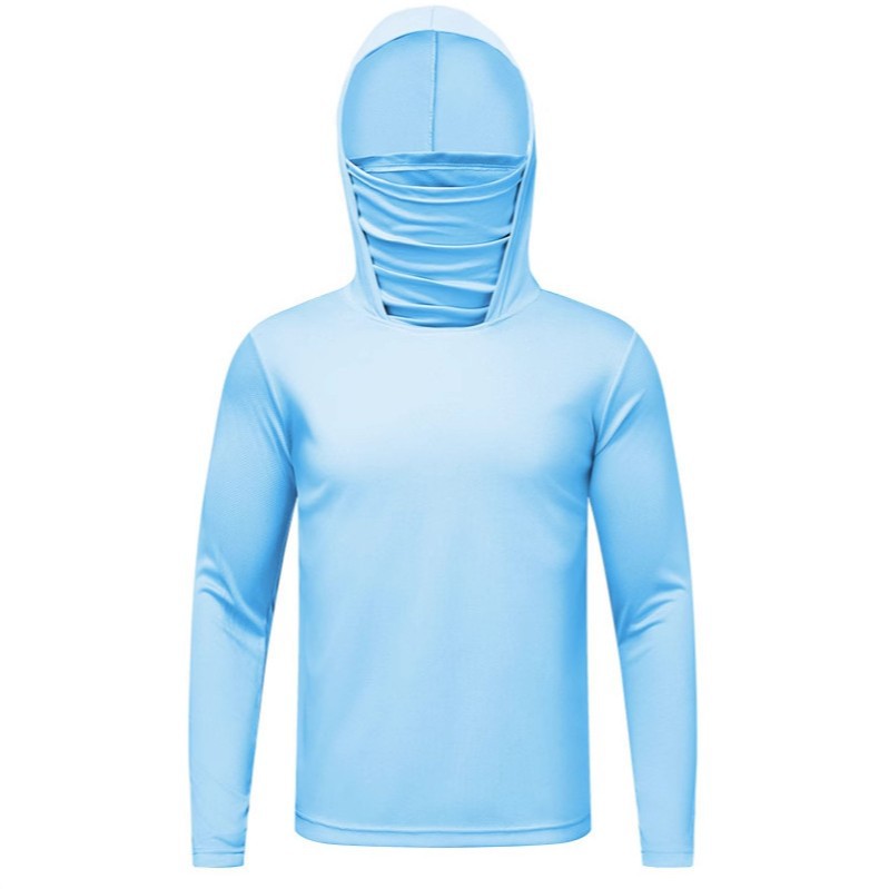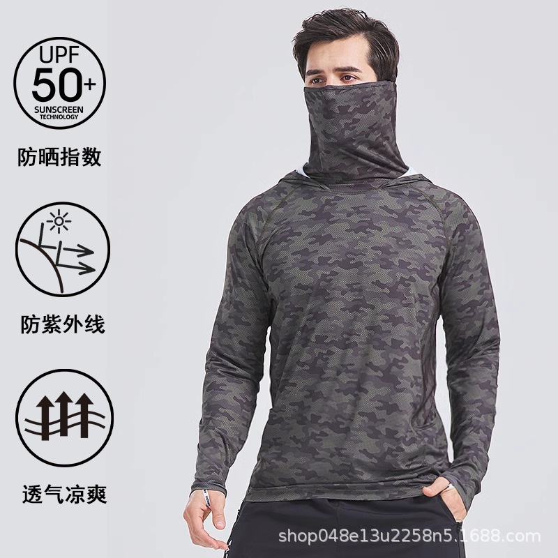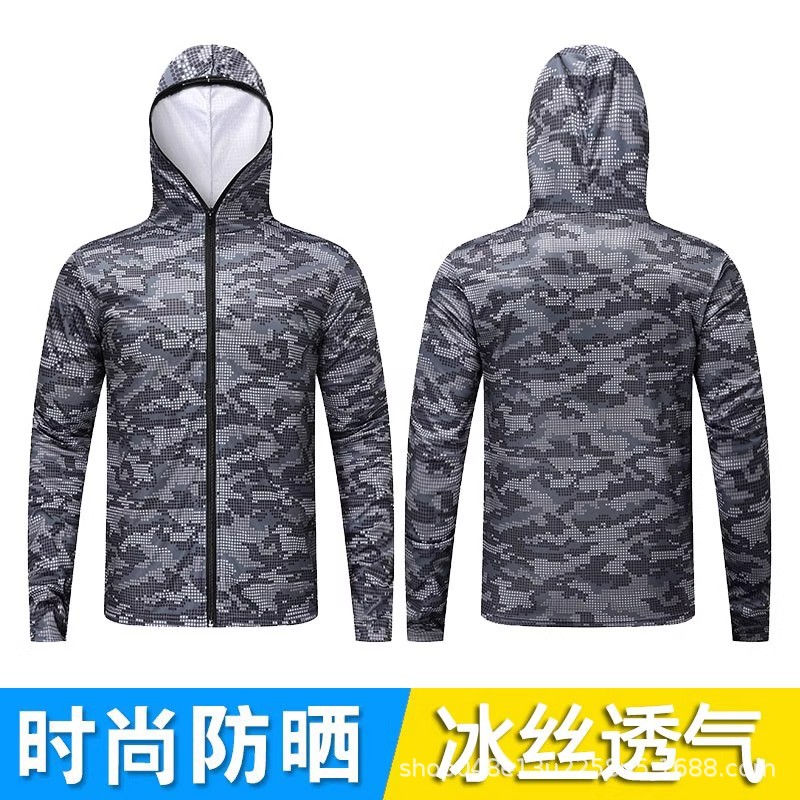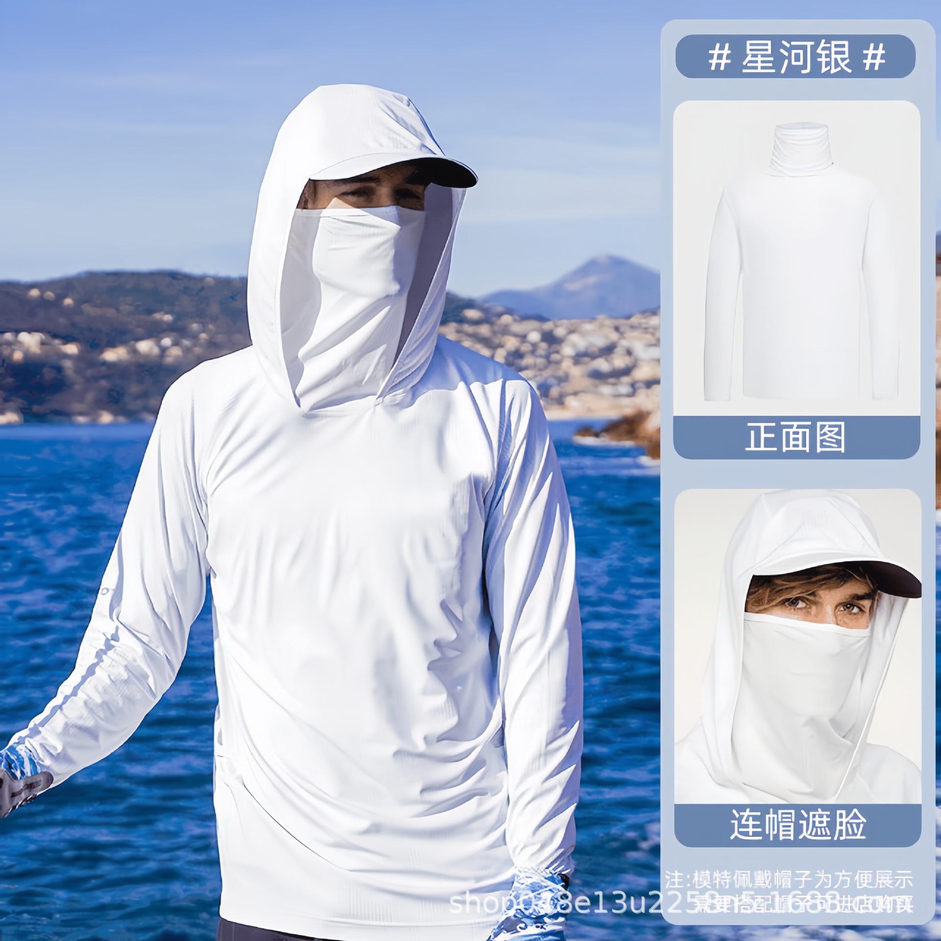 夏の人気の屋外日焼け防止服メンズアイスシルク通気性速乾性釣り日焼け止め服フード付き日焼け止めマスク釣り服