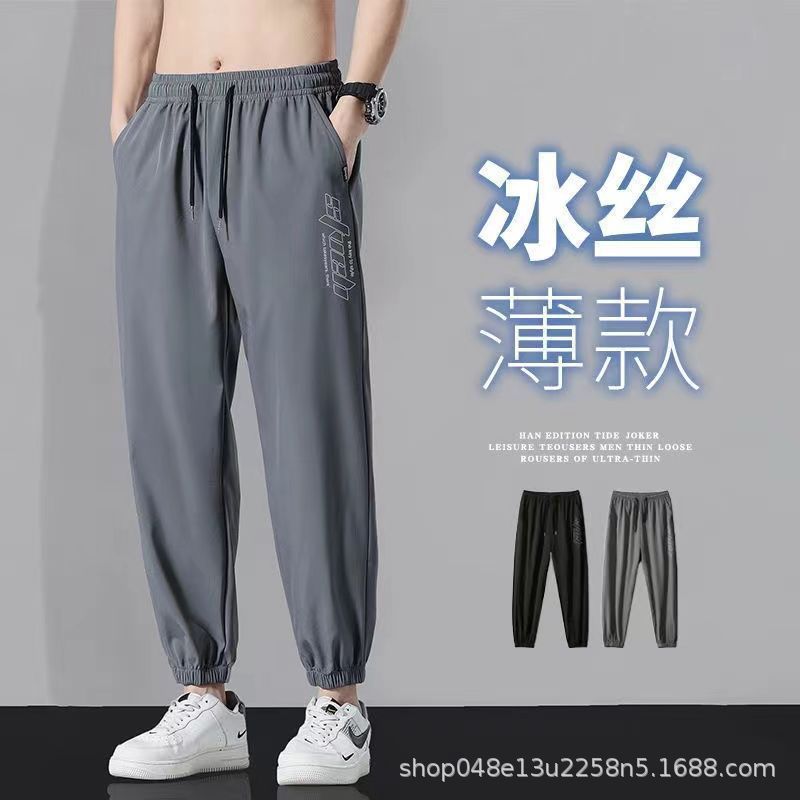アイスシルクパンツメンズ夏 2025 新しいトレンディなスポーツパンツメンズ薄型カジュアル 9 点レギンススウェットパンツ