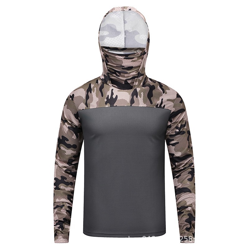 迷彩釣り日焼け防止服メンズアイスシルク夏超薄型フェイスカバー屋外釣りルアー抗 UV 通気性日焼け防止服
