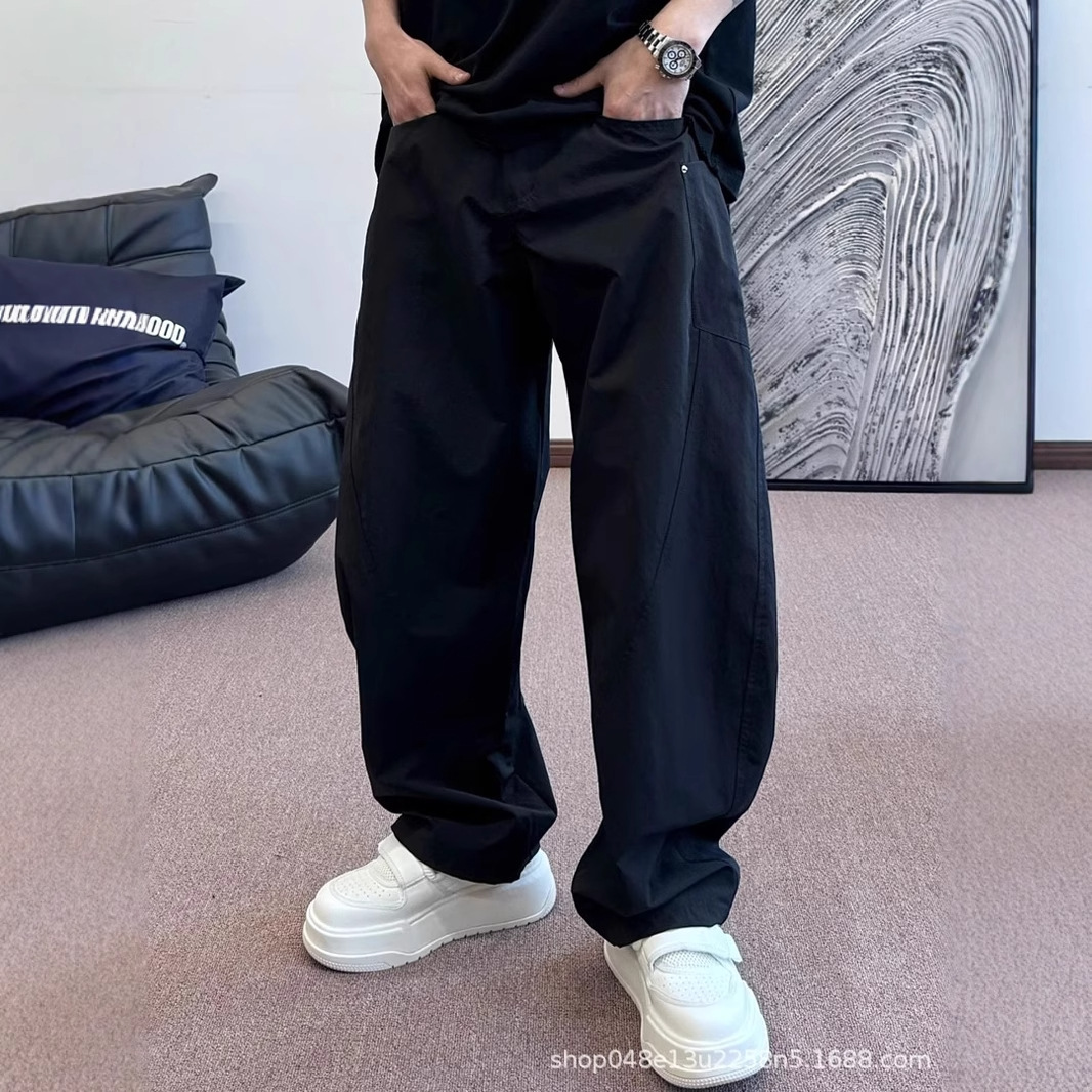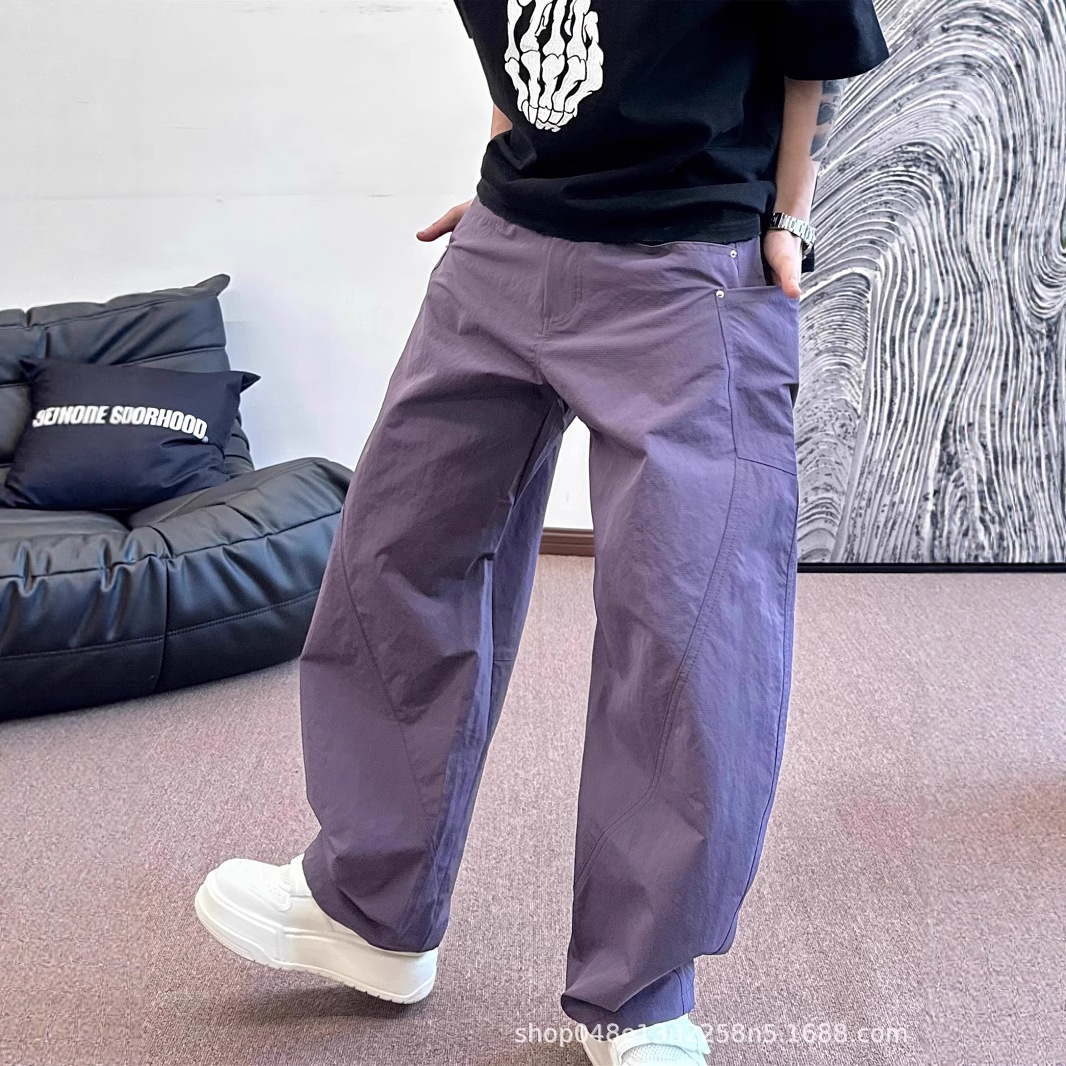 夏薄型シミターカジュアルパンツメンズトレンディな新しい多用途ソリッドカラーシンプルなルーズワイドレッグワークウェアハーレムパンツ