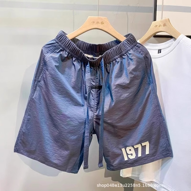 メンズビーチショーツ夏レーザーカラフルな反射ハイストリートクォーターパンツ速乾性通気性アイスシルクミッドパンツスポーツパンツ