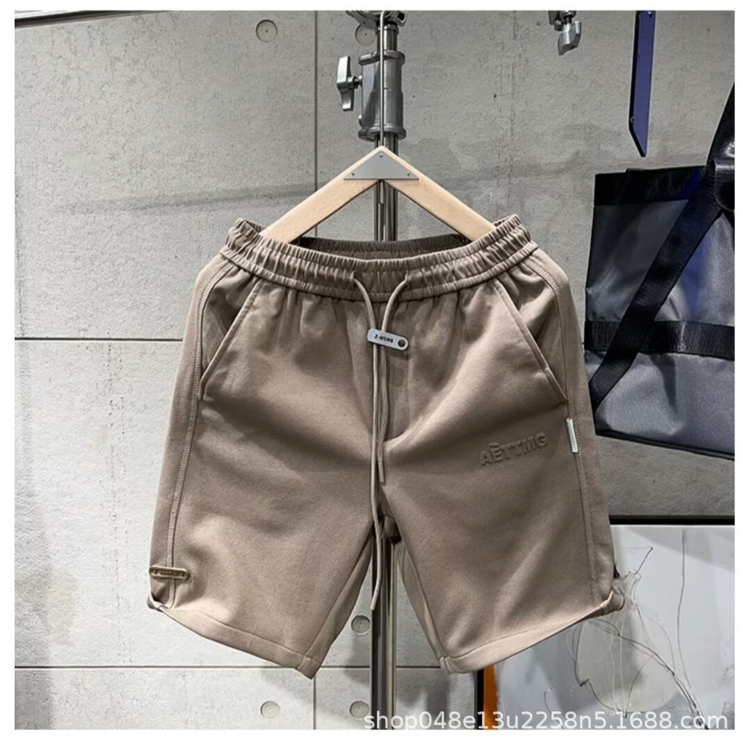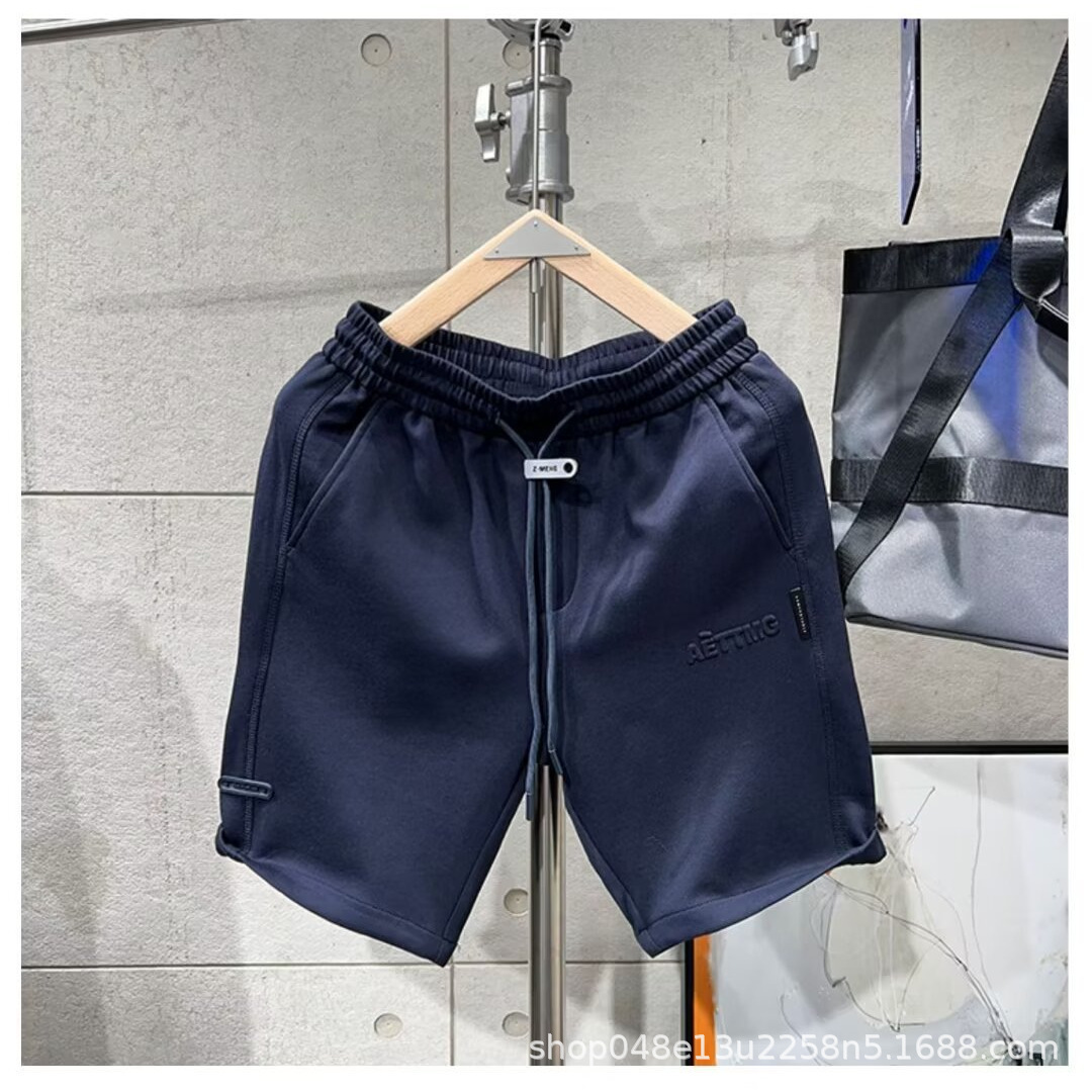 夏の新作メンズカジュアルショートパンツ、ゆったりとした伸縮性のあるスポーツレースアップレターミッドパンツ、シンプルでトレンディでハンサム