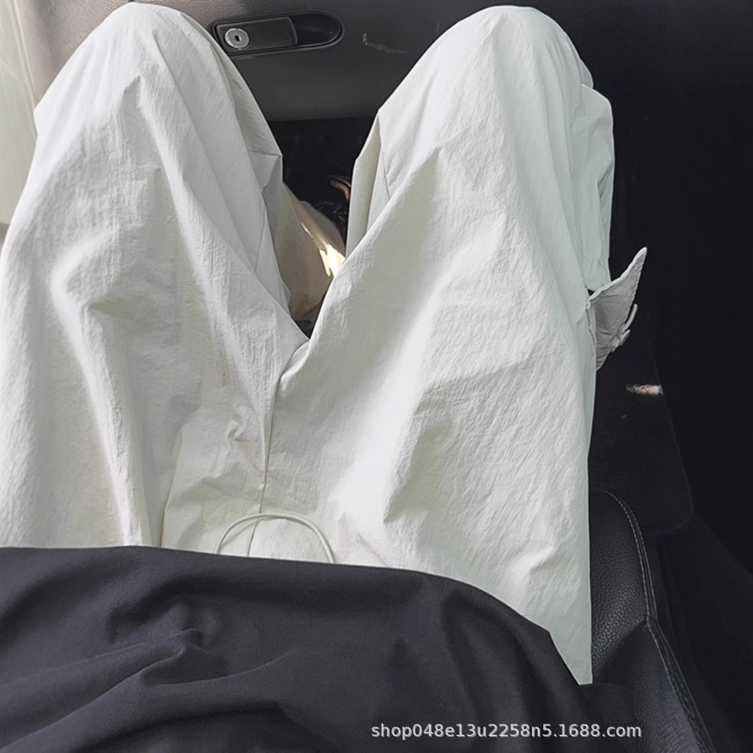 グレーアイスシルクオーバーオールメンズ夏アメリカンハイストリート薄手速乾ストレートパンツクリーンフィットラージポケットパンツ