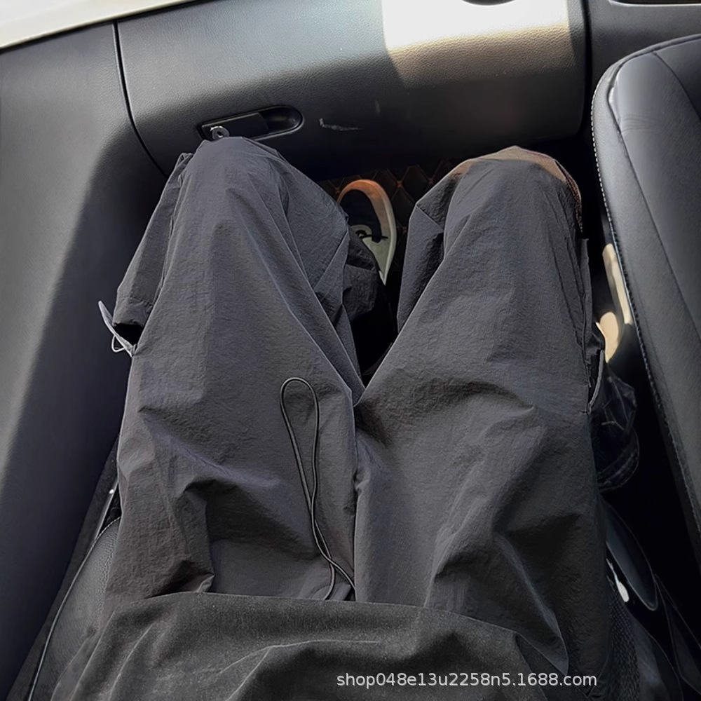 アメリカンワイドレッグカジュアルパンツメンズ夏ハイストリートルーズストレートスポーツパンツ超薄型アイスシルクワークウェアロングパンツ