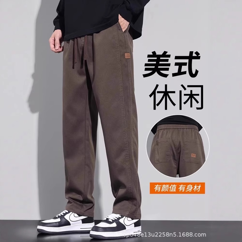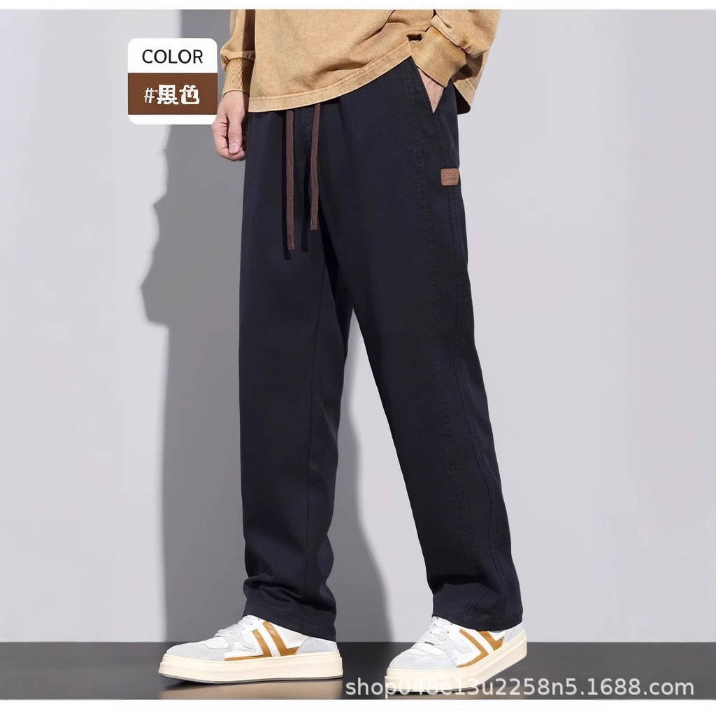 2025 新アメリカントレンディなルーズカジュアルパンツメンズ春秋ストレートメンズ無地ラベル作業ズボン
