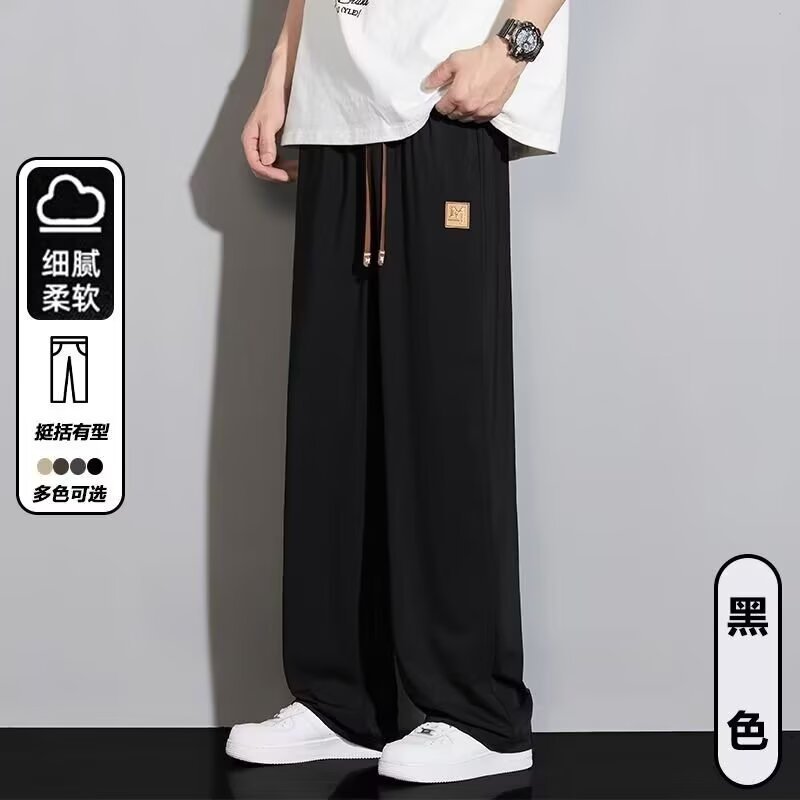アイスシルクドレープカジュアルパンツメンズ夏薄手ルーズストレートワイドレッグスポーツロングパンツトレンディ