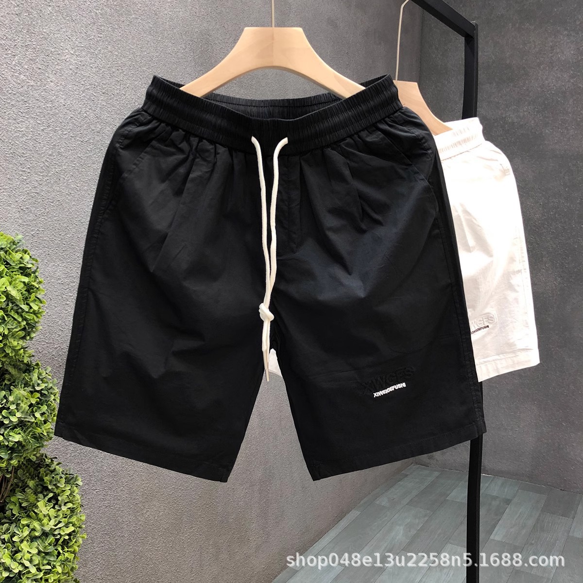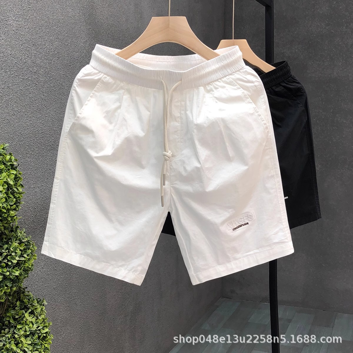 高級夏スタイルの男性用白ショートパンツ、トレンディなブランド、ハンサム、軽い高級感、カジュアルな5点パンツ、アウターウェア、速乾性ビーチパンツ