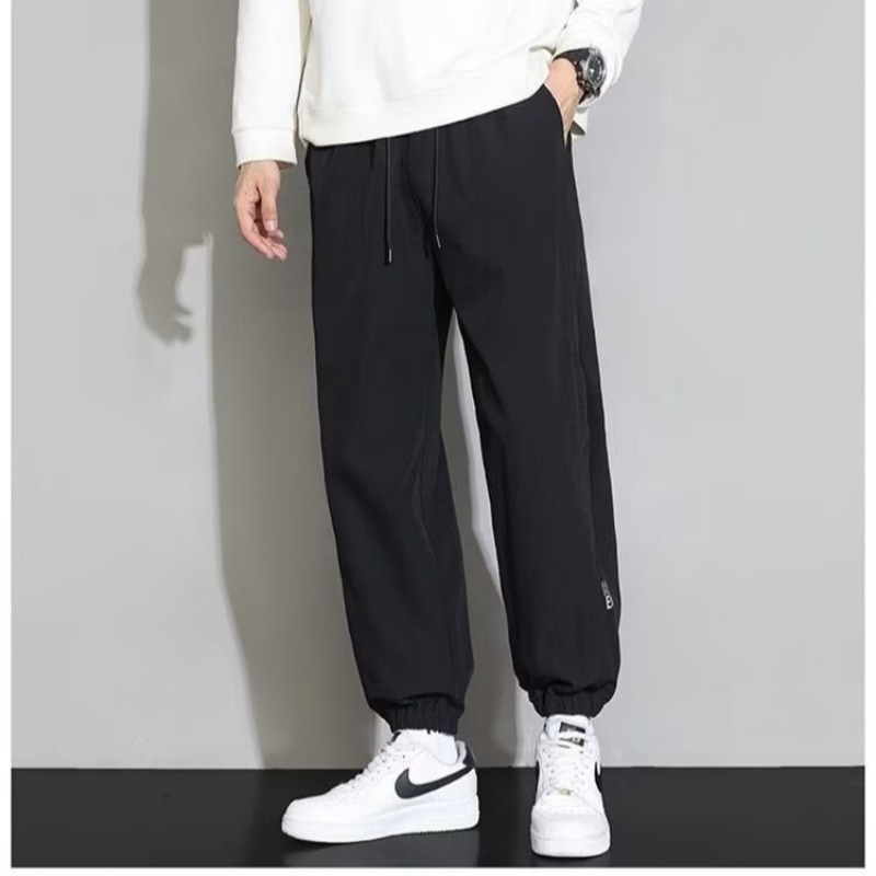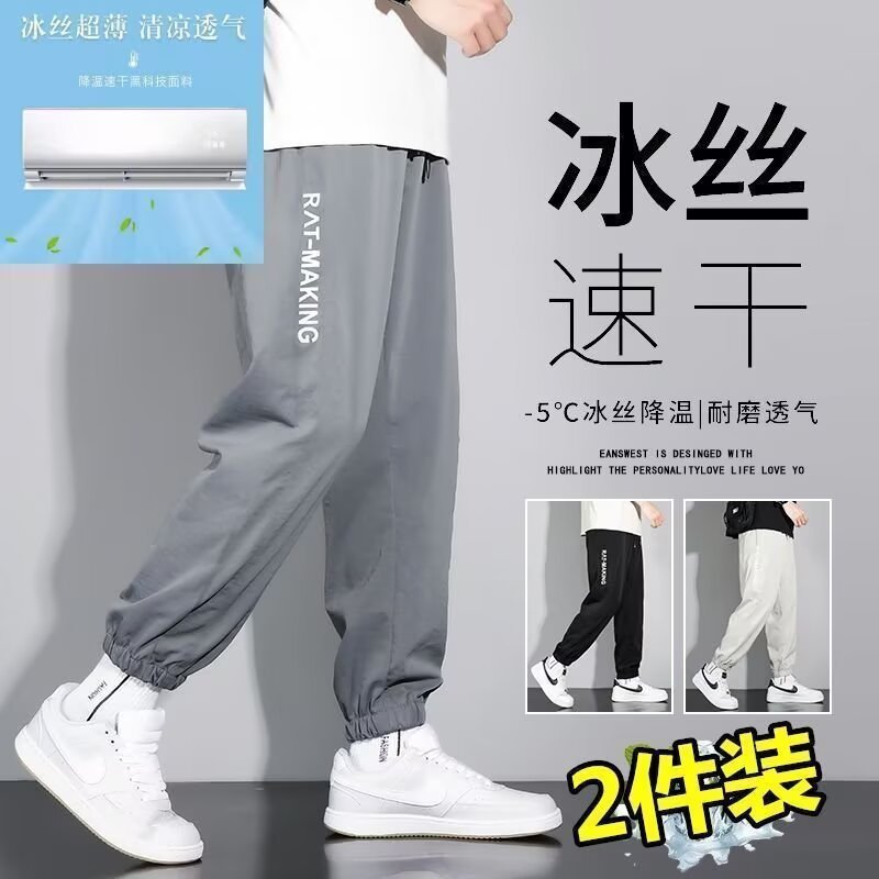 2025 新ストレートアイスシルク速乾性メンズカジュアルパンツメンズ夏薄いルーズスポーツロングパンツ