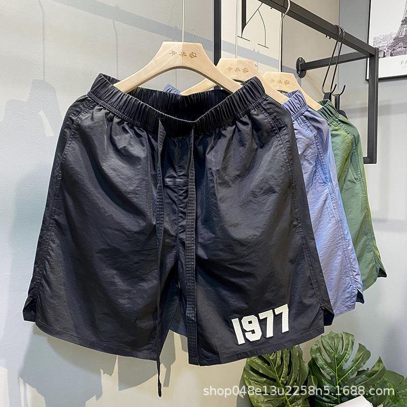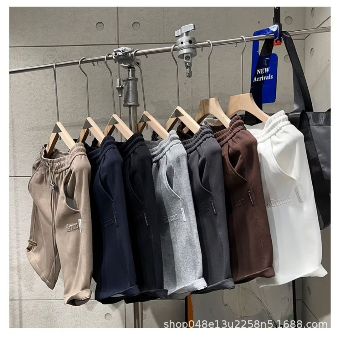 夏のトレンドブランドのシンプルな無地のスポーツパンツメンズレトロストリートルーズで多用途なカジュアルショートパンツ