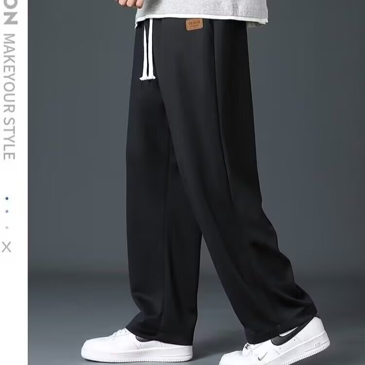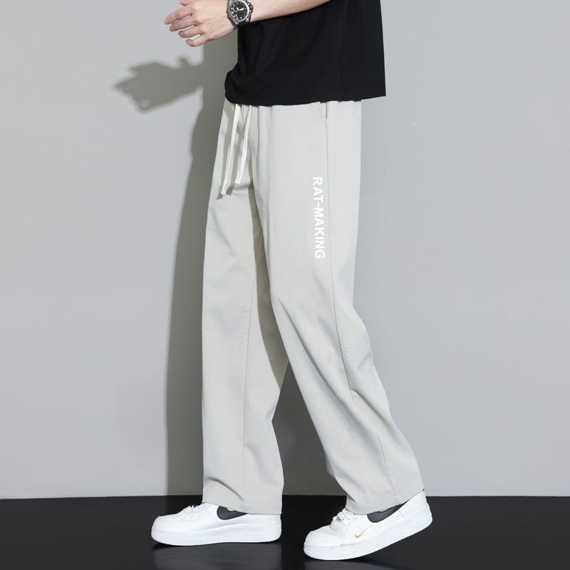 アイスシルクカジュアルパンツメンズ夏のトレンディなブランド多用途ドレープストレートパンツボーイズワイドレッグルーズスポーツパンツ