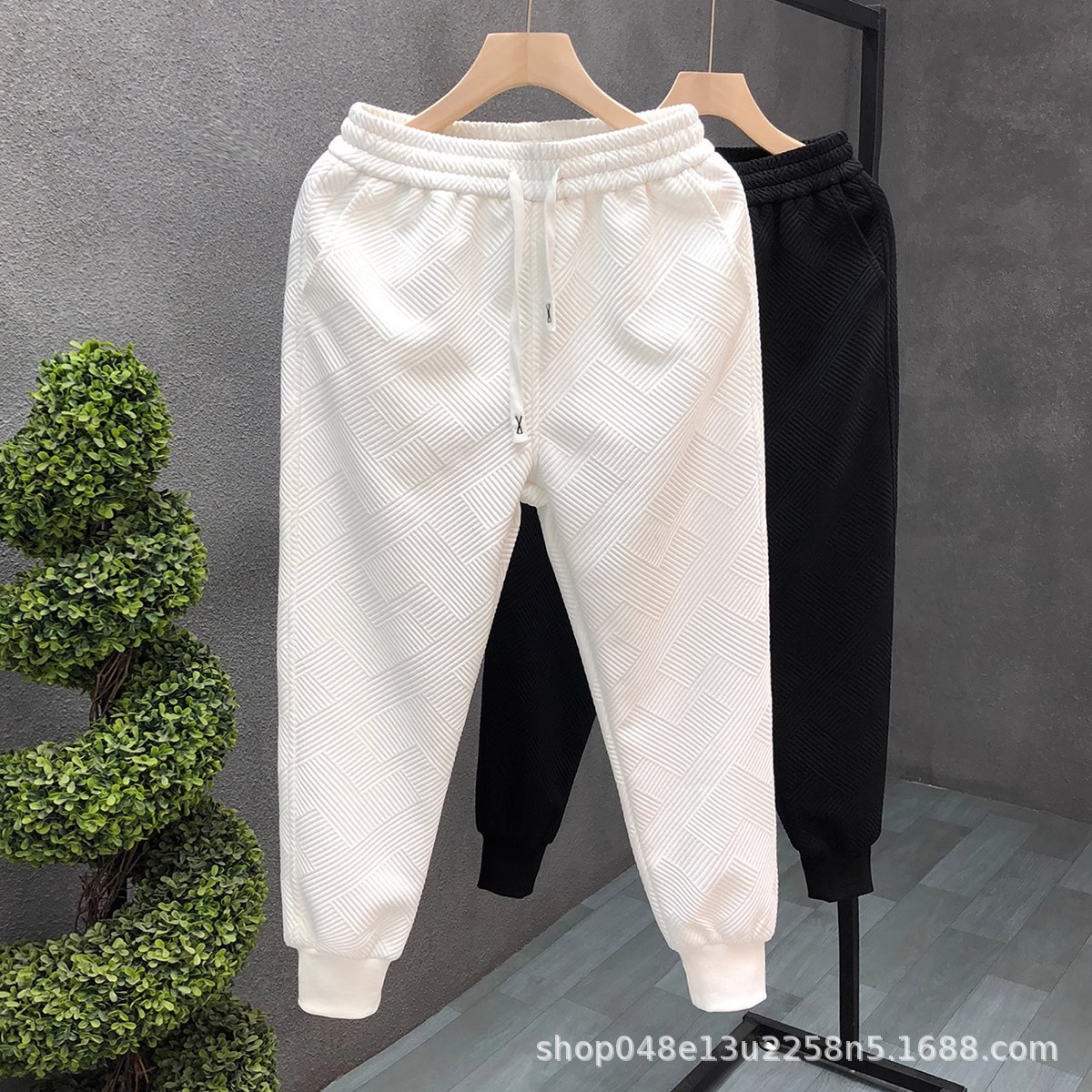 トレンディな春の高級ヨーロッパ柄巾着白カジュアルスウェットパンツメンズスリムフィット9点スポーツパンツ