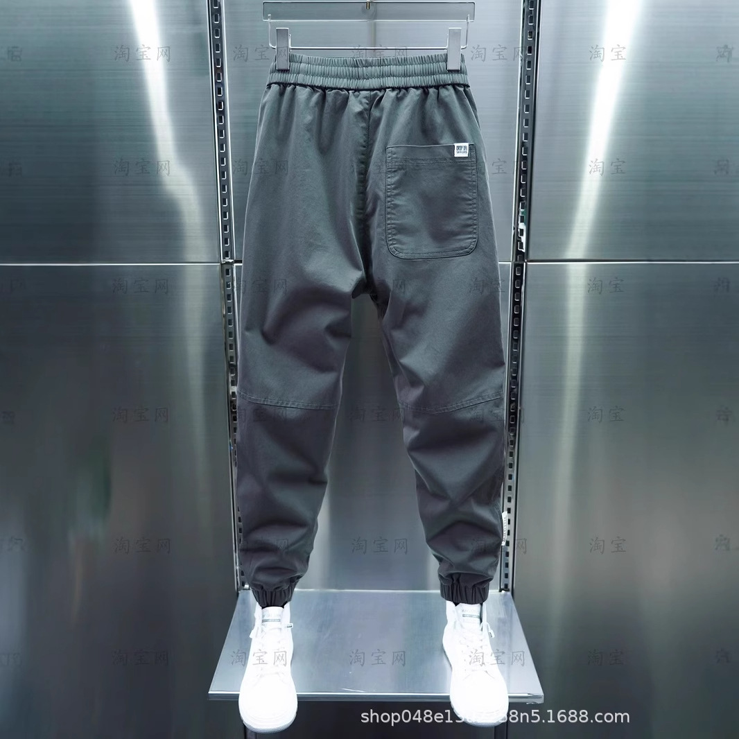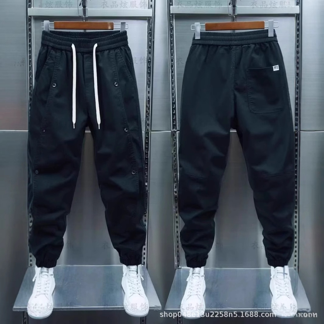 春と秋のネットセレブ人気オーバーオールメンズトレンディカジュアルスポーツハーレムパンツメンズブラック9点レギンス