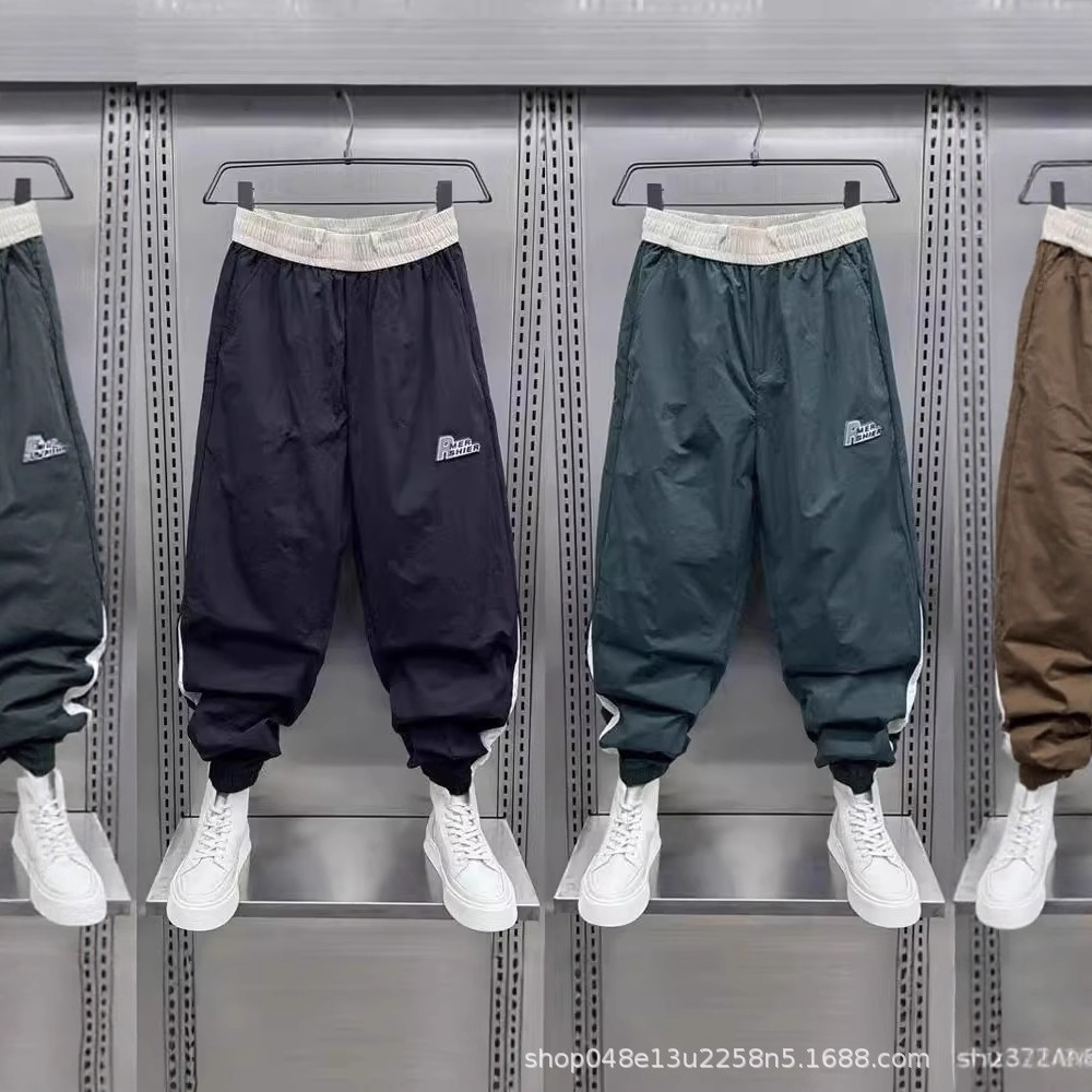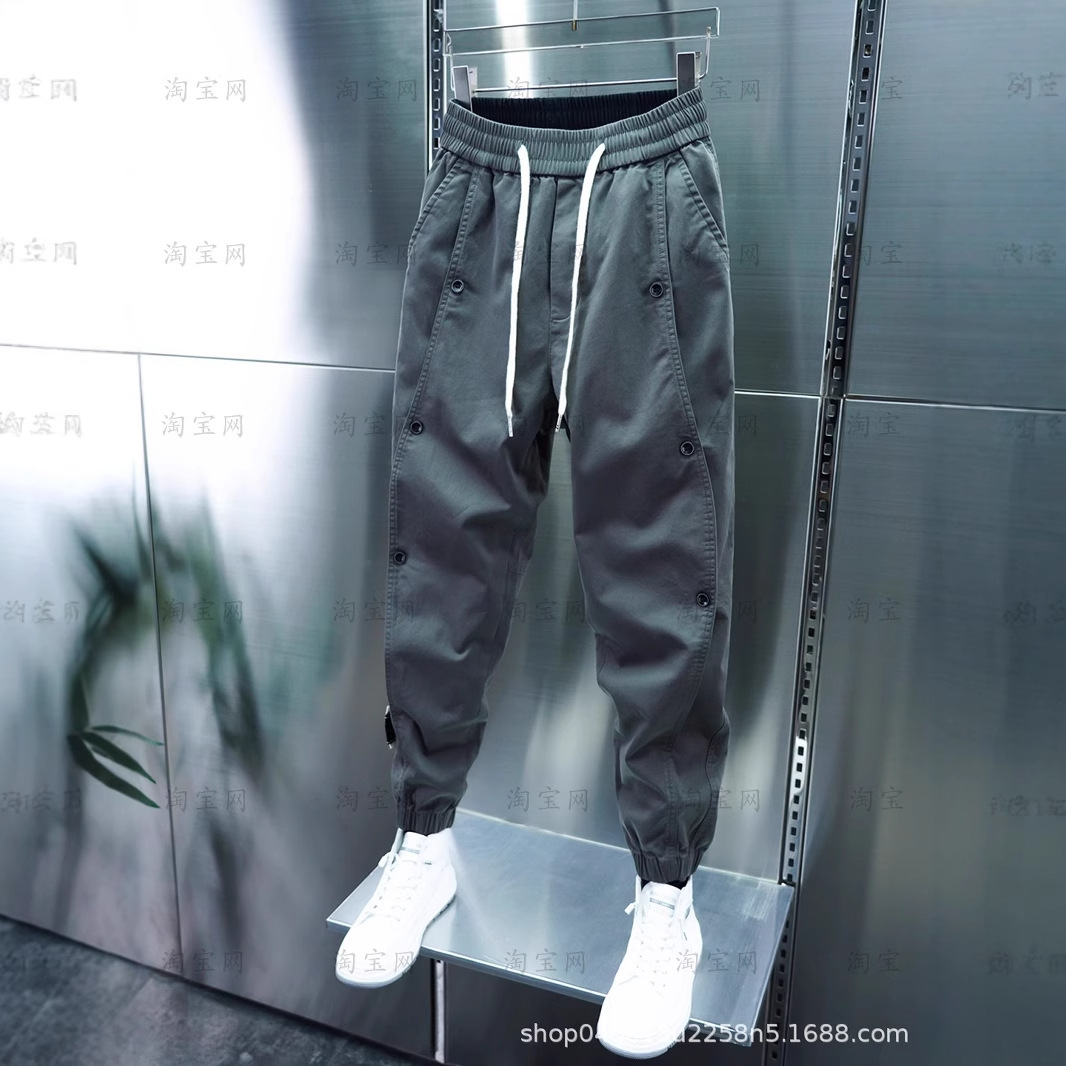 2025 春の新作メンズカジュアルパンツブレストレギンスオーバーオールトレンディなブランドステッチ無地ルーズハーレムレギンス