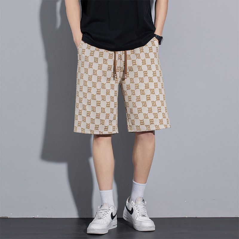 男の子用ショートパンツ 2025 夏の新スタイルクール速乾性スポーツビッグパンツアイスシルク薄いファッションプリントミッドパンツ