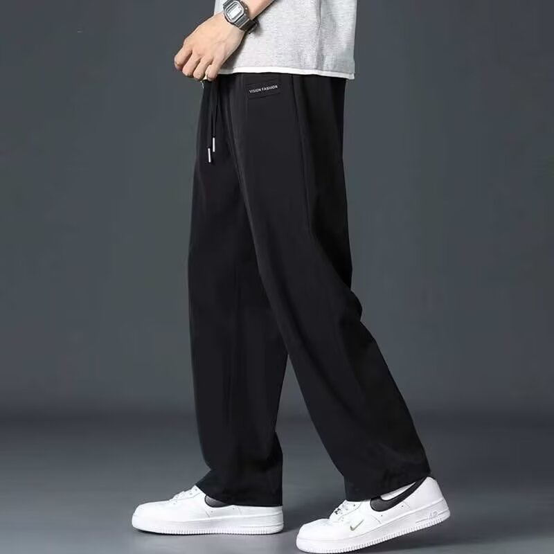 2025 新ストレートアイスシルク速乾性メンズカジュアルパンツメンズ夏薄いルーズスポーツロングパンツ