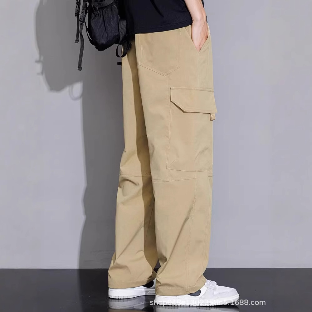 春と秋の男性用カジュアルパンツ、新しいトレンディなブランド、ルーズストレートアメリカンレトロメンズベーシック多用途ワークウェアパンツ男性用