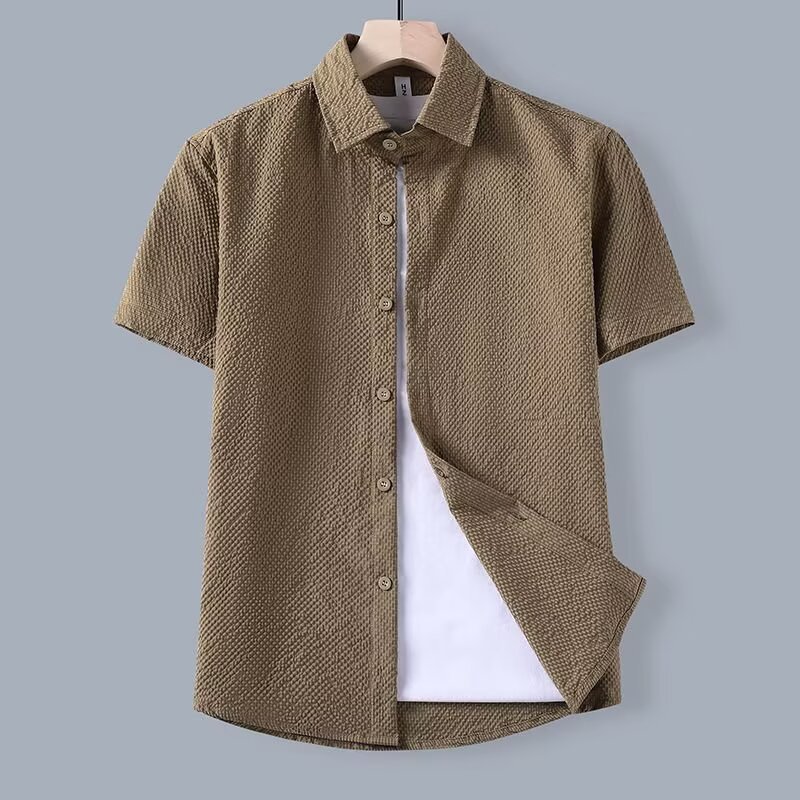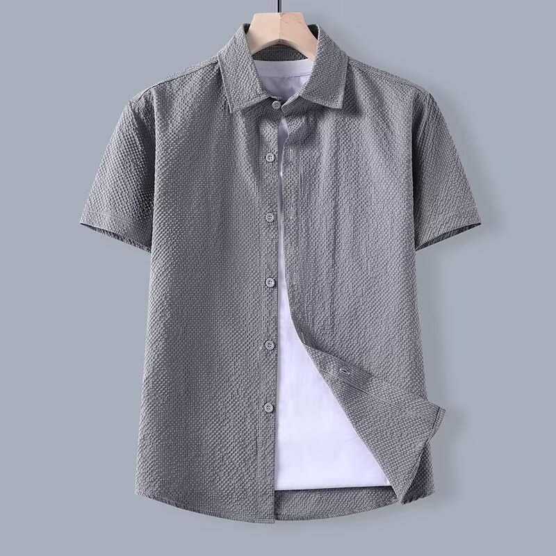 シャツメンズ半袖夏無地インチシャツアイスシルククールトップスハンサムカジュアルスリムシャツメンズトレンド