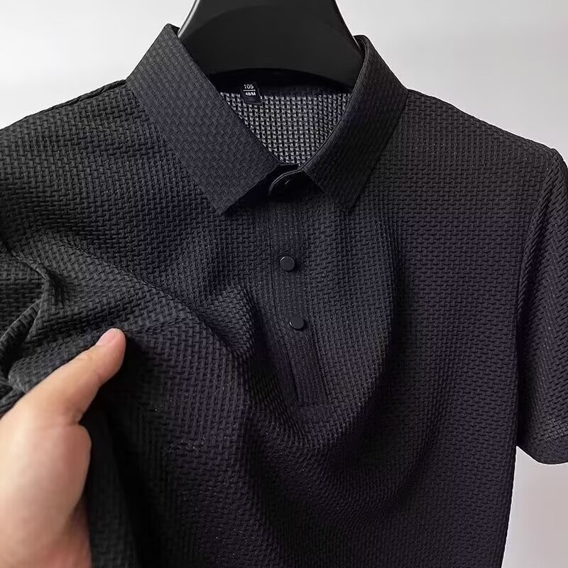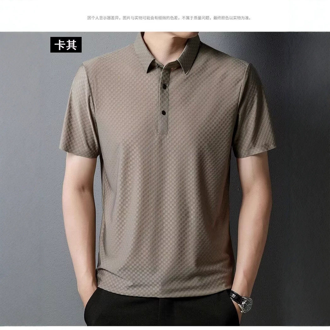 シームレスアイスシルクポロシャツ半袖Tシャツメンズビジネスカジュアル夏薄い抗シワ通気性トップ