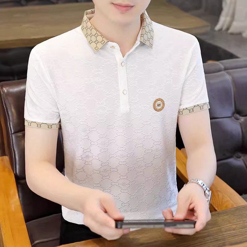 夏のトレンドファッションカジュアルハンサムライトラグジュアリーTシャツメンズユース半袖ポロシャツトップスボトリングシャツ