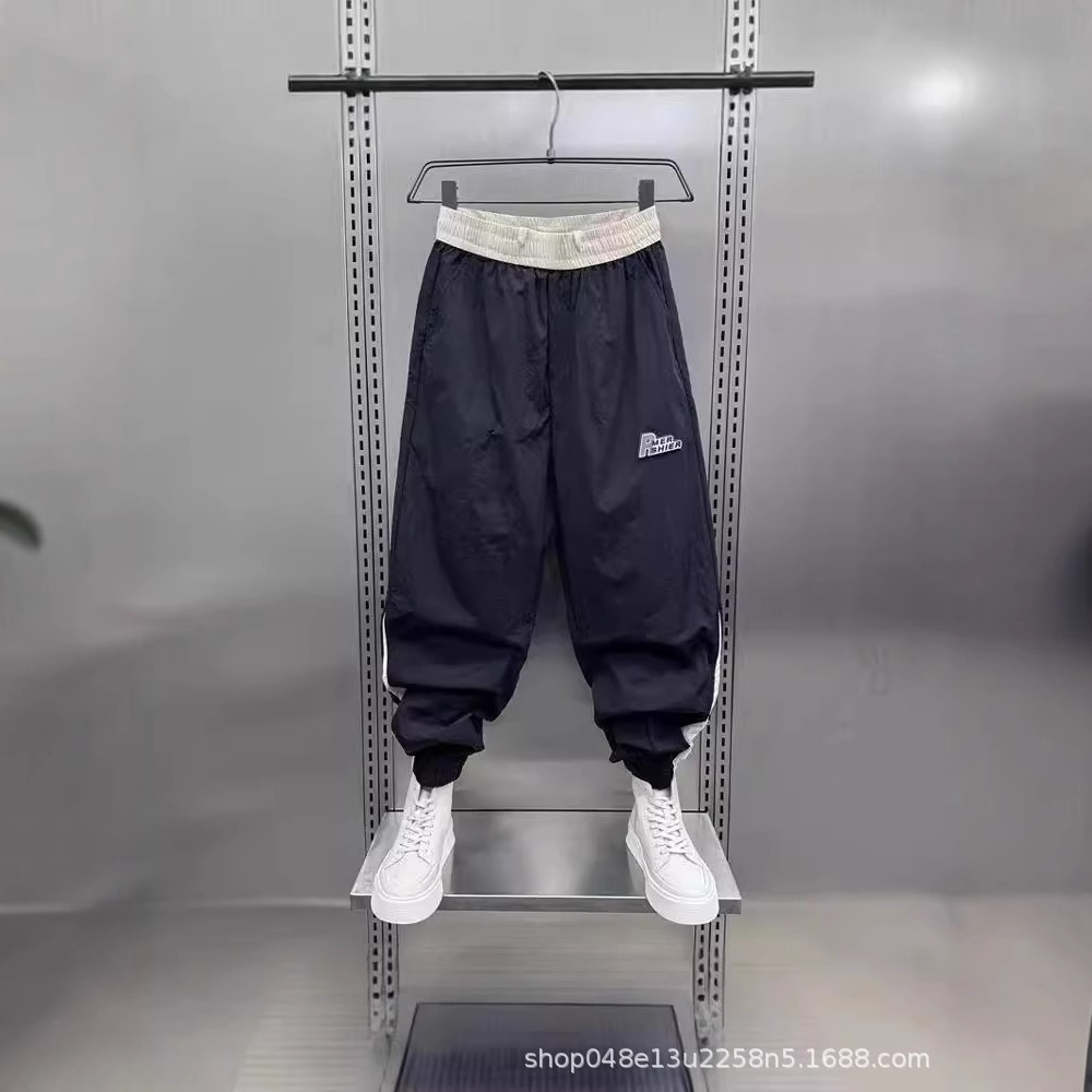 韓国アイスシルククロップドパンツメンズ夏薄手韓国版トレンディ多用途大きいサイズ香港スタイルストレートカジュアル