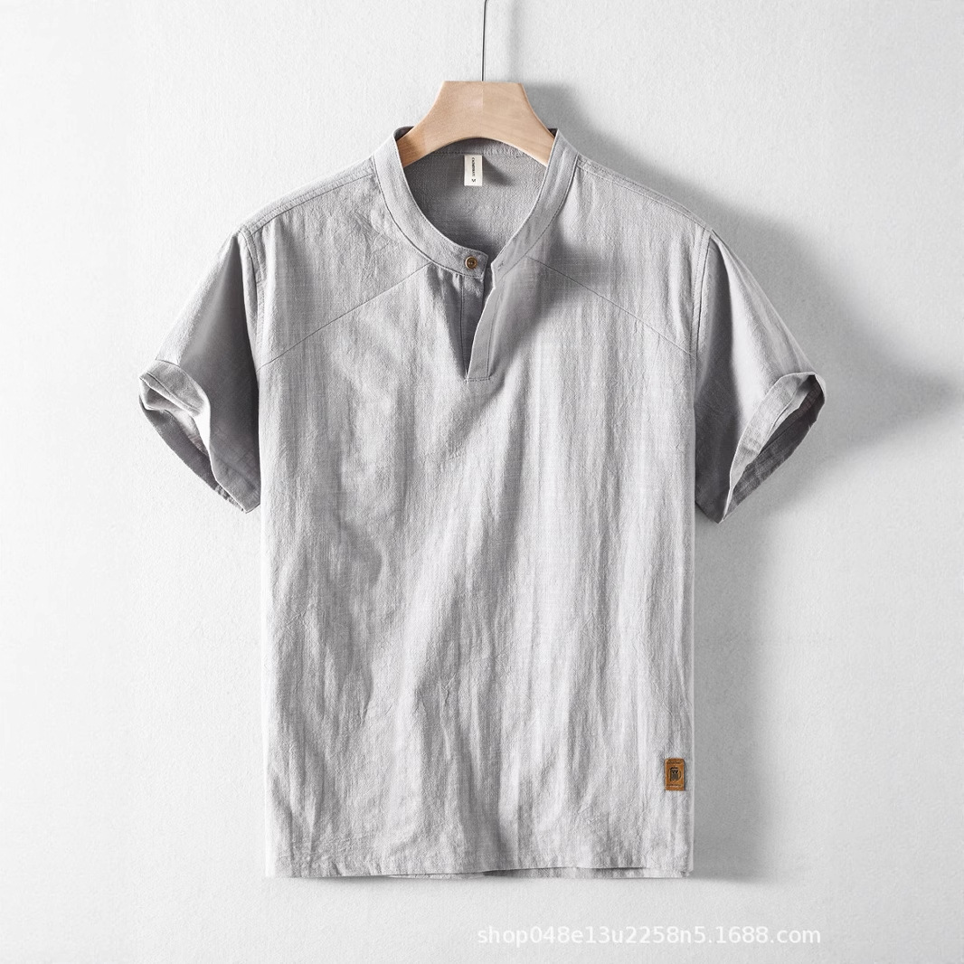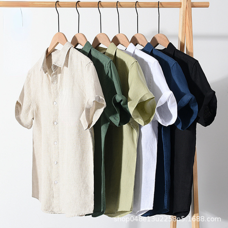夏のリネンシャツメンズ半袖薄手ルーズリネントップ中国風日本レトロカジュアルコットンとリネンシャツ