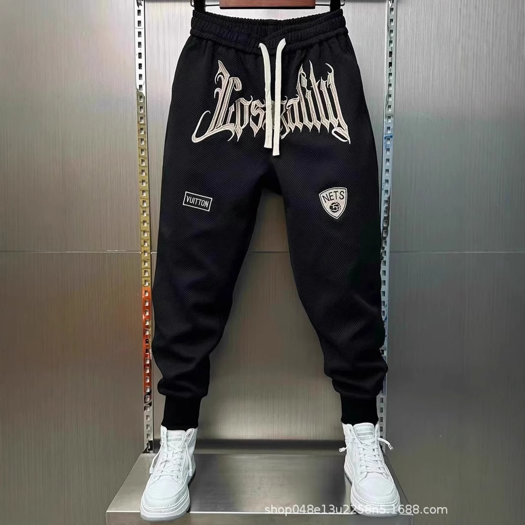 2025 春夏刺繍小脚カジュアルパンツメンズ多用途レギンススポーツパンツファッショナブルなストレッチハーレムパンツ