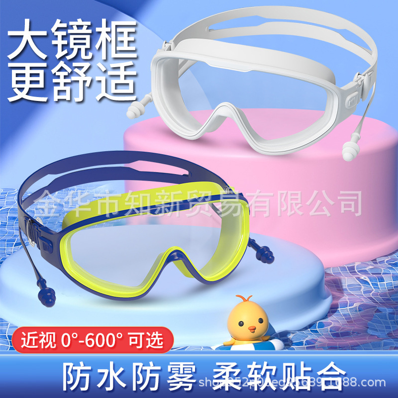 大型フレーム水泳鏡防水防霧ハイビジョン水泳眼鏡耳栓付き子供水泳鏡成人対外貿易カスタム代発