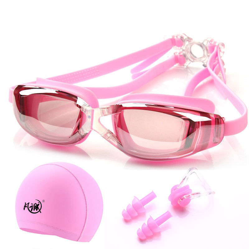 (特価在庫一掃) 水泳鏡防水防霧ハイビジョン近視水泳メガネ通用水泳帽子セット潜水装備