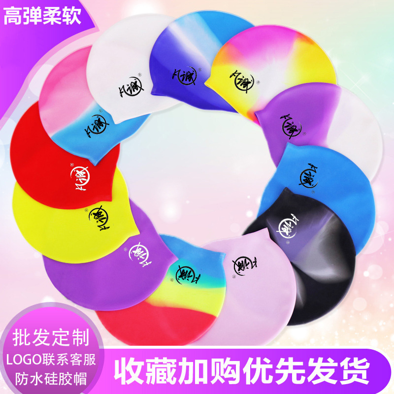 (特価在庫一掃) シリコン水泳帽男女防水長髪高弾無首成人児童水泳装備卸売り