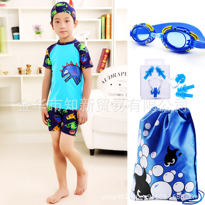 子供水着男の子水泳パンツセット男の子スプリット水着韩国赤ちゃん日焼け止め水着水着水着キャップセット
