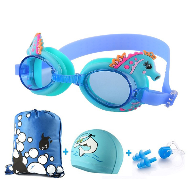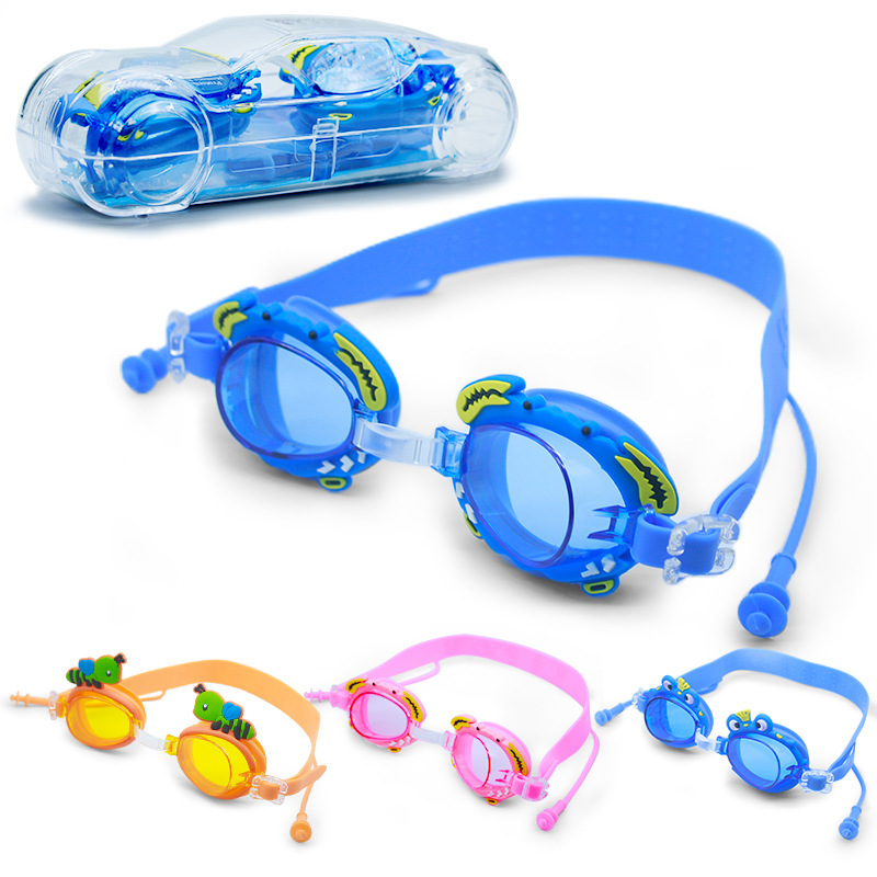 子供用ゴーグル水泳キャップ耳栓セット男の子女の子女の子カニ漫画防水防曇赤ちゃん水泳メガネケース