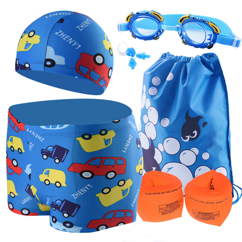 子供用水泳パンツ + 水泳鏡 + 水泳帽5点セット男の子用平角水泳パンツ子供用水着男性大