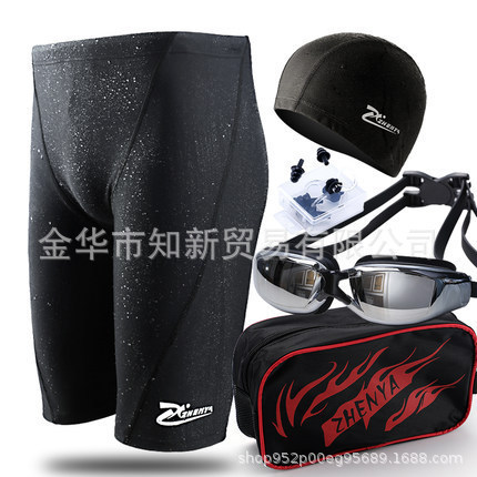 水泳パンツ男性五分速乾防水水泳パンツ男性大サイズサメ皮水着男性水泳帽水泳鏡セット装備