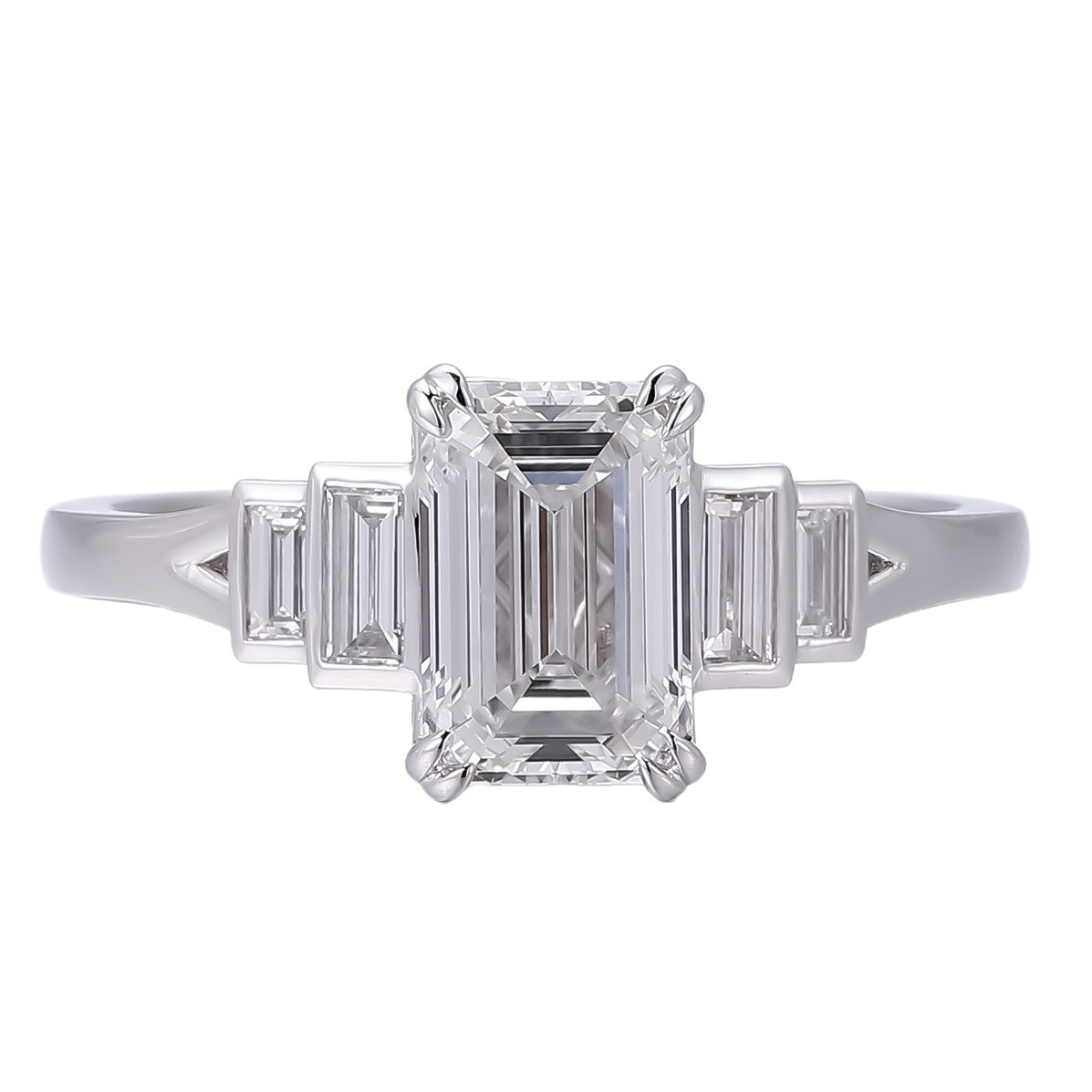 1 カラットのダイヤモンド リング カスタマイズされたニッチで多用途な 18K ホワイト ゴールド 3 ストーン ウェディング リング 女性用 エメラルド クルーティング ダイヤモンド リアル ゴールド