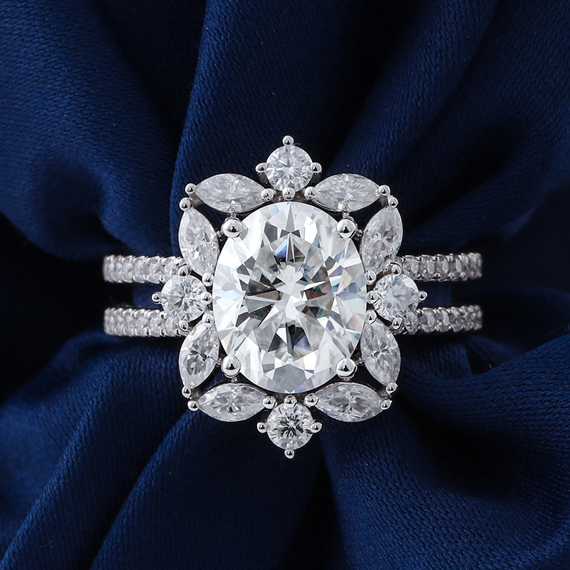 卵型モアッサナイトリングカスタマイズされた 4.5 カラット非退色クロスボーダージュエリー源工場 18K ゴールドリング女性用