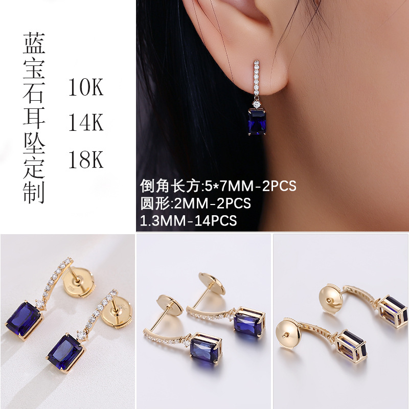 女性用サファイアイヤリング、カスタマイズされたハイエンドの軽い高級感、宴会ギフトの必需品、18Kゴールドカラー、再検査GRC証明書をサポート